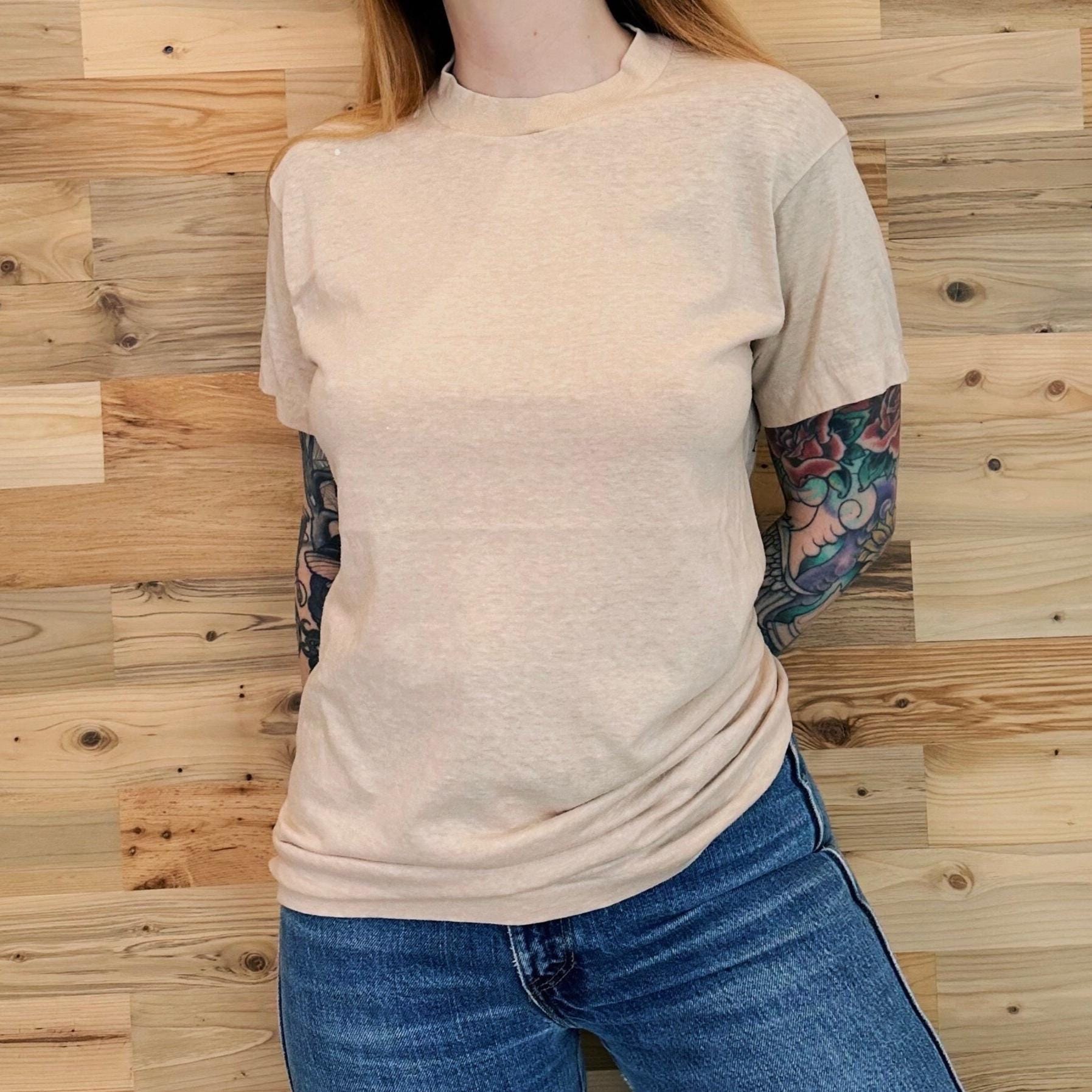 Material: 50/50 Kodel Polyester & Cotton / Single stitch / VERY soft and thin - perfect vintage feel & look!