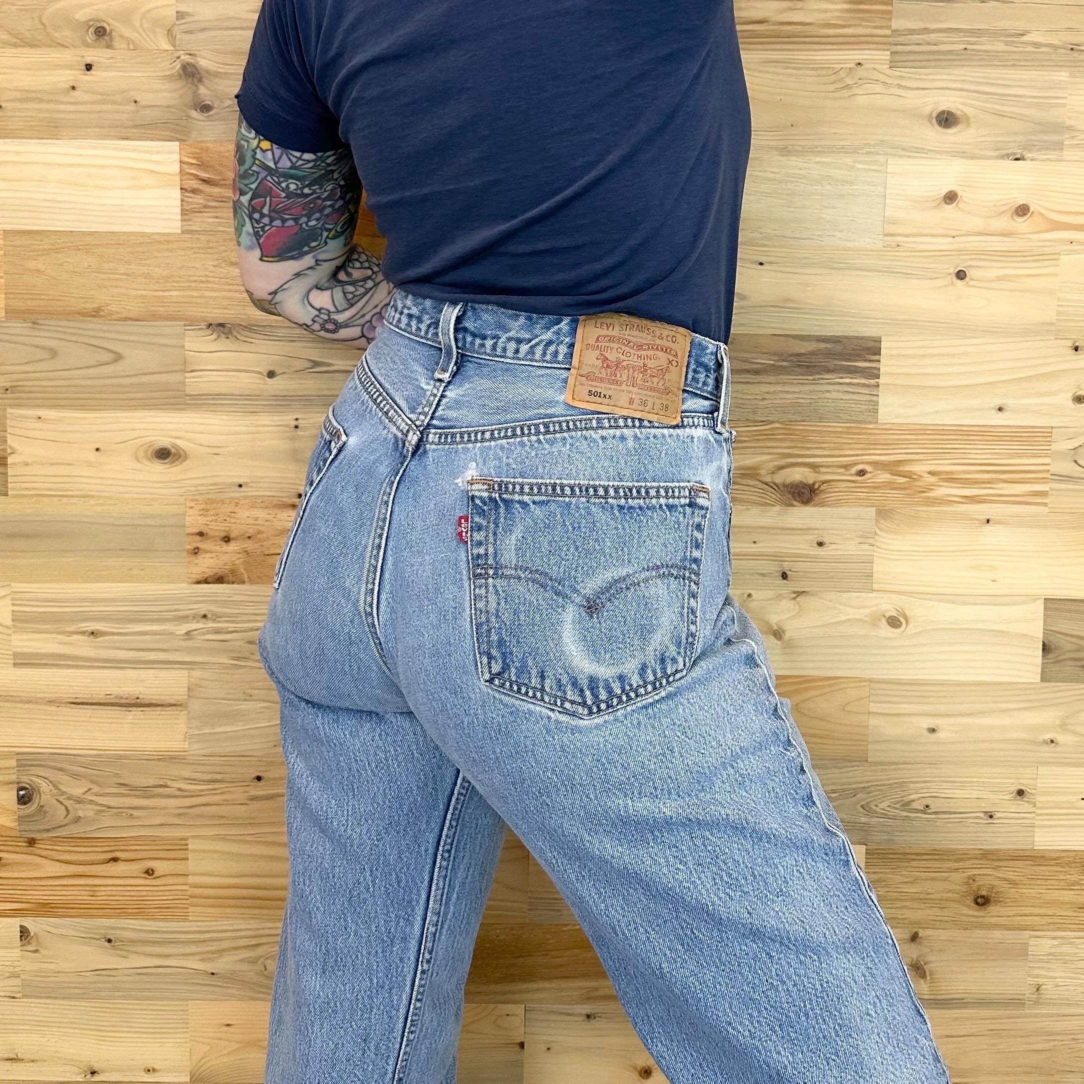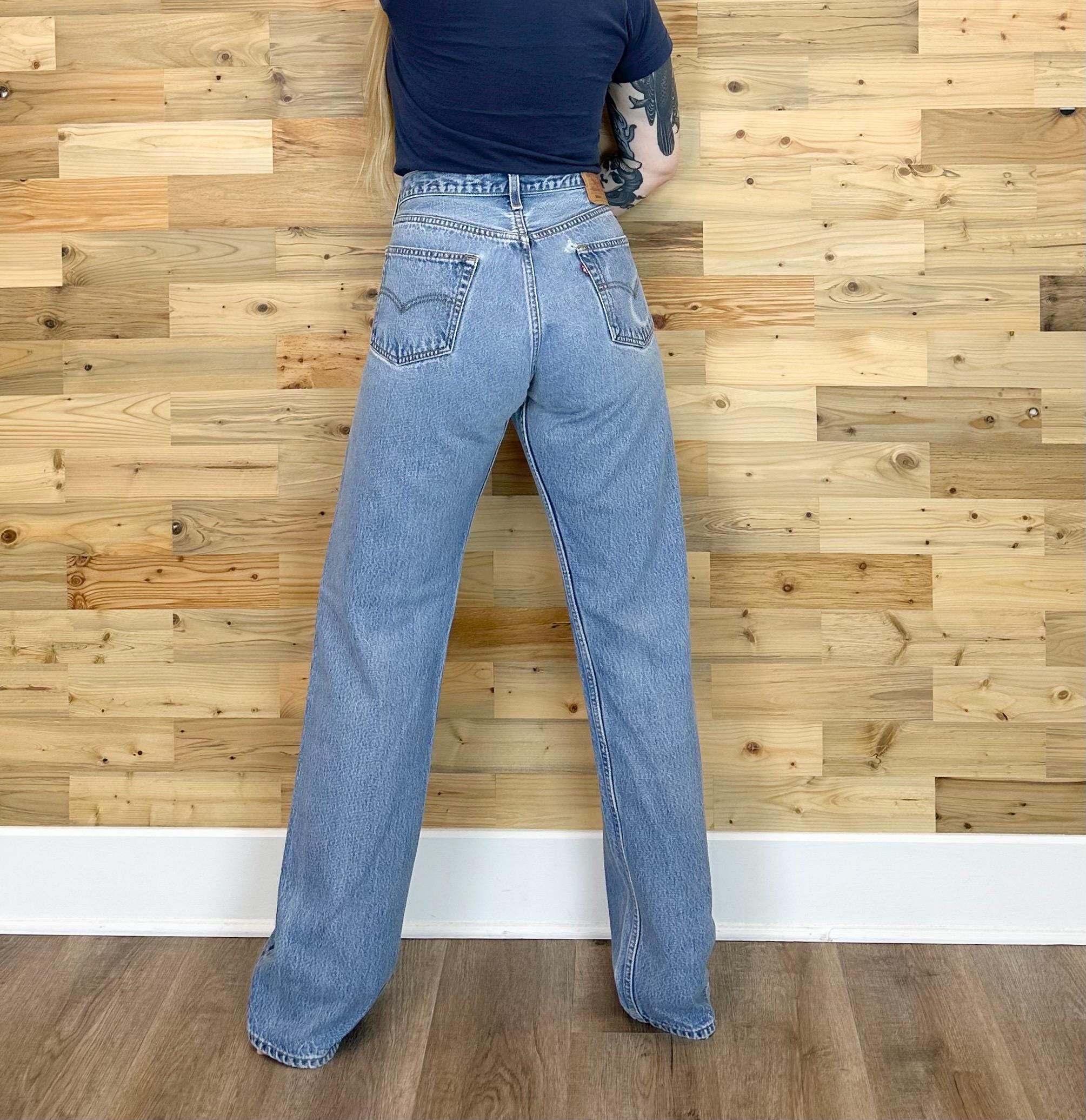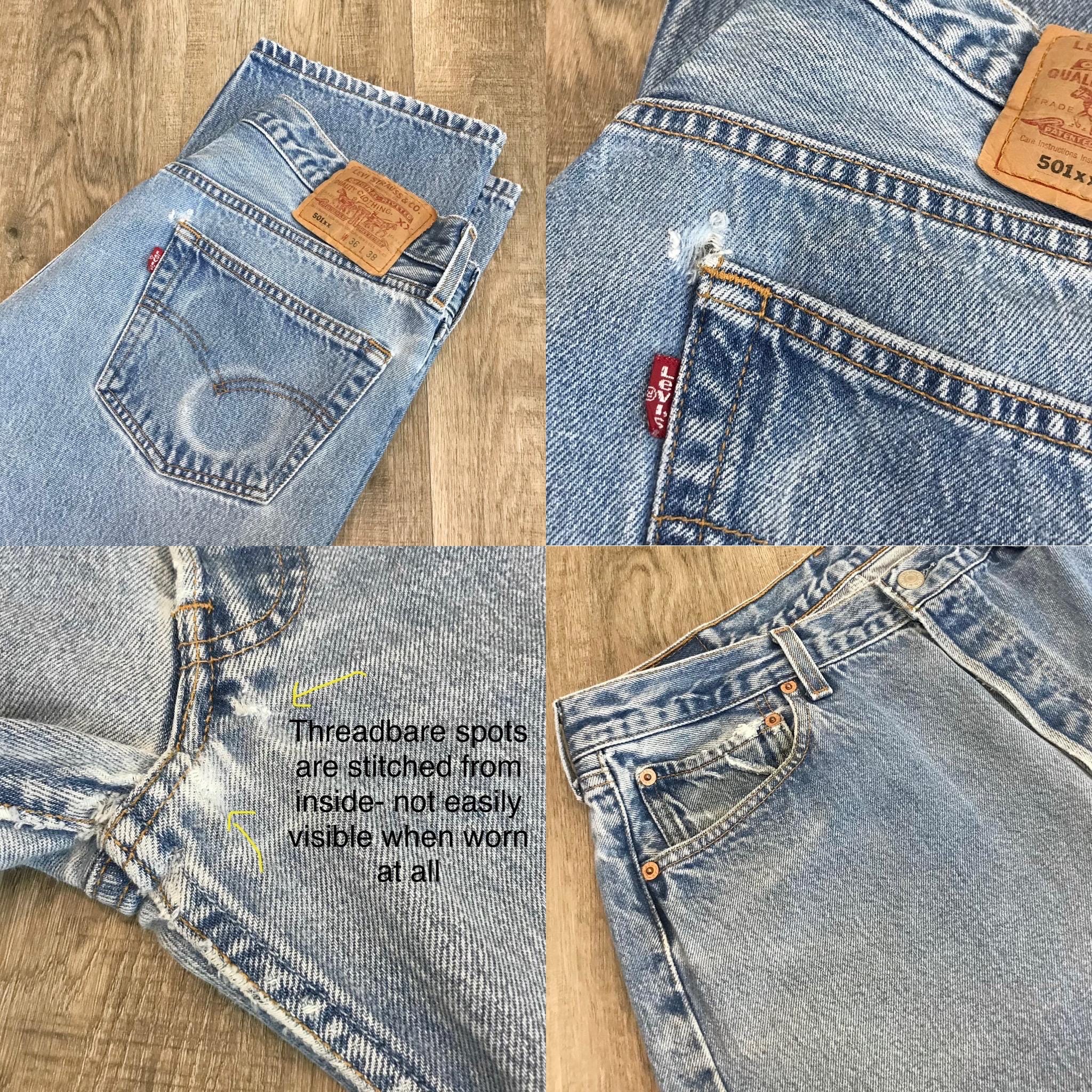 All denim has been cleaned/sanitized and item will be sent ready to wear! Jeans are 20+ years old and in great vintage condition with normal vintage characteristics. Fading, wear, small marks, twisted seams and general vintage character should be expected. Zoom to see condition detail in flat photos.
