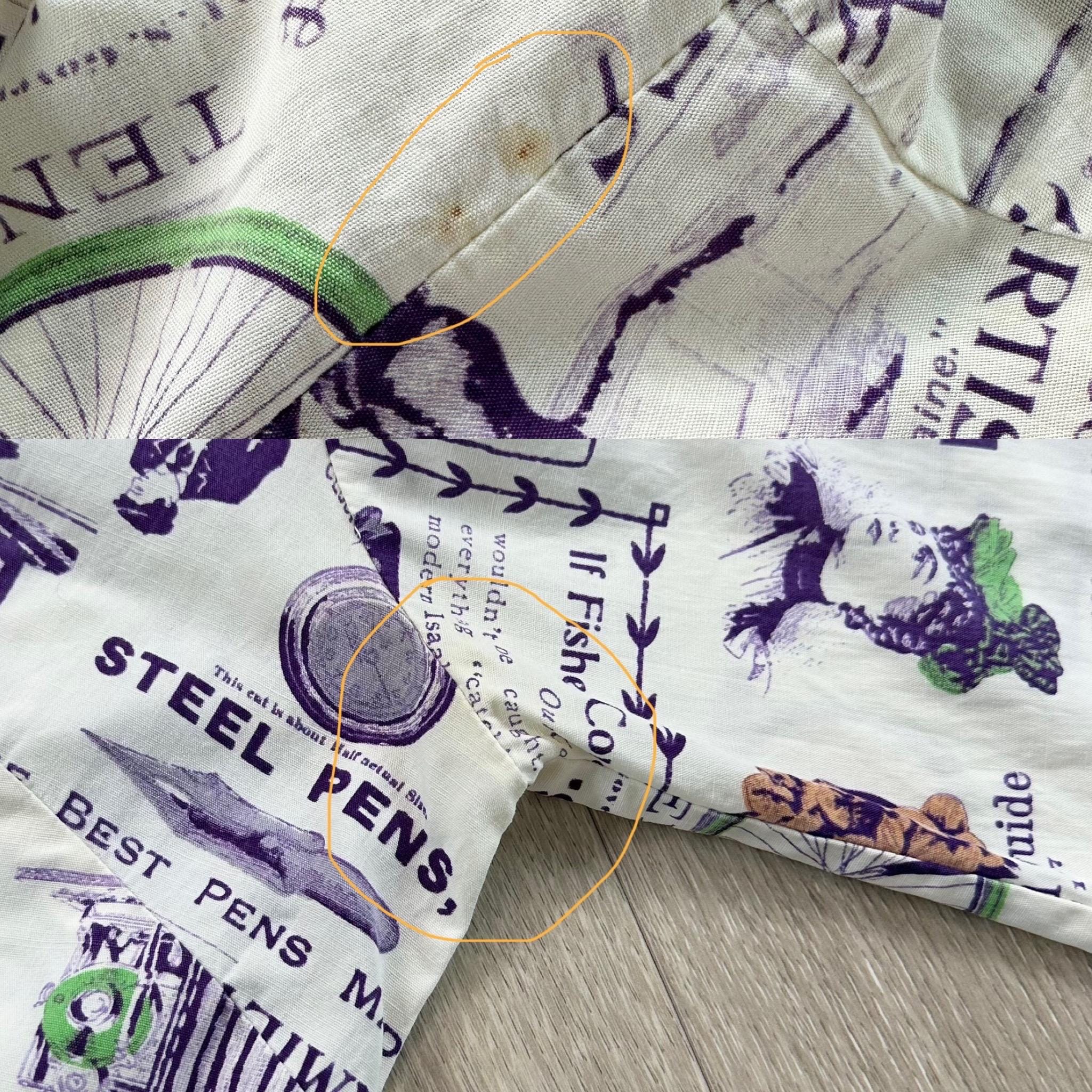 *Condition / Notable wear or flaws: Shirt is very old and I've given it a deep soak to try and give it a second life. A few small marks here and there and some very faint discoloring near underarm (very light and hardly visible, definitely not visible when worn!)