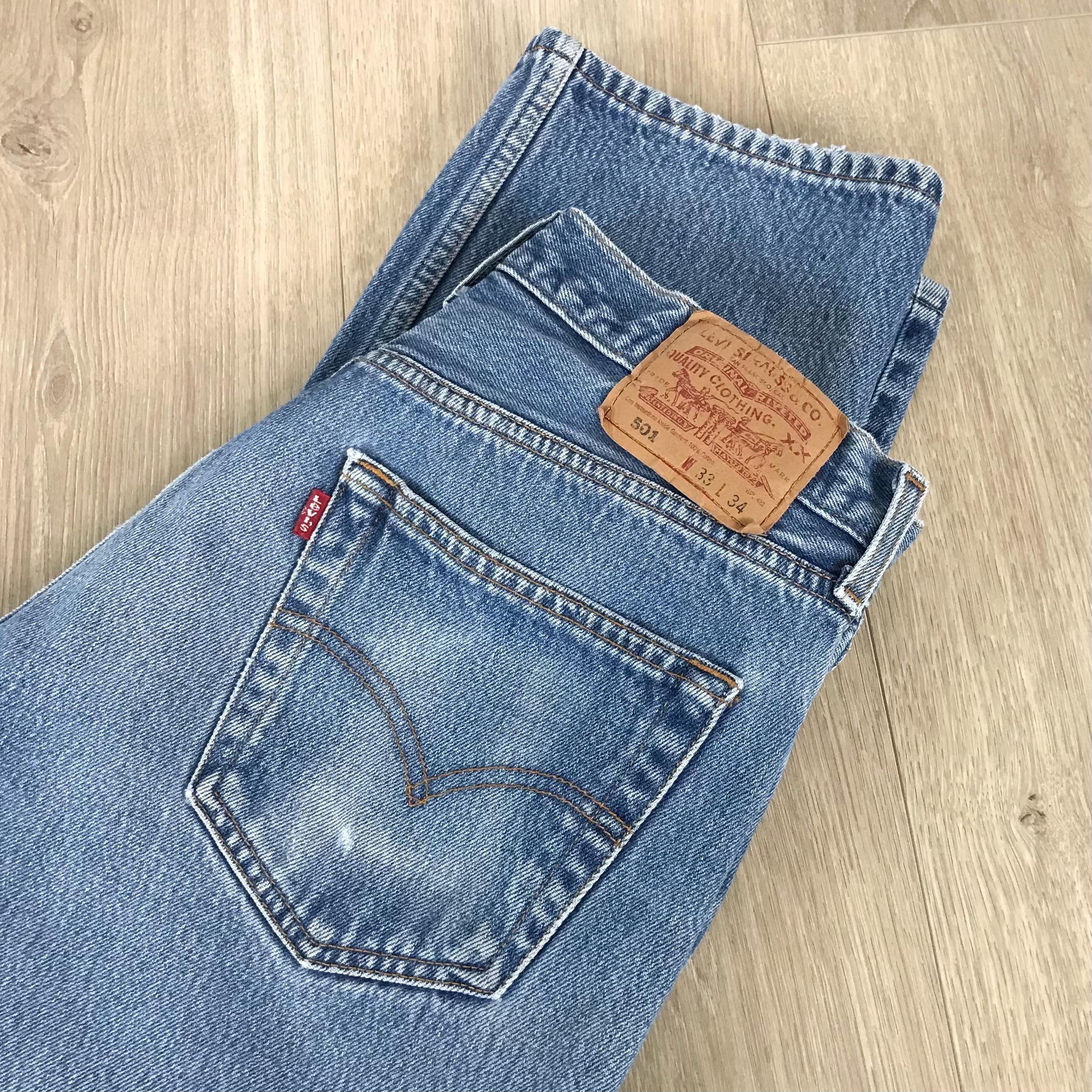 All denim has been cleaned/sanitized and item will be sent ready to wear! Jeans are 20+ years old and in great vintage condition with normal vintage characteristics. Fading, wear, small marks, twisted seams and general vintage character should be expected. Zoom to see condition detail in flat photos.