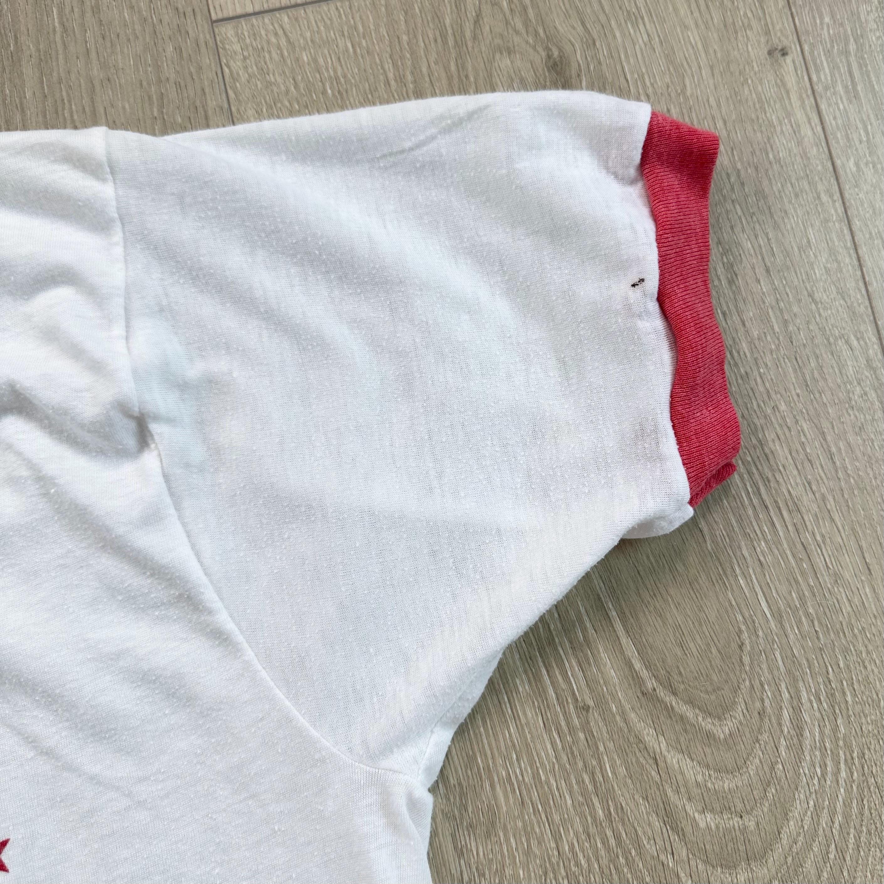 *Condition / Notable wear or flaws: Shirt is very old and does have some notable vintage character - natural fading and wear, a few small marks, some spots where there's pink color bleeding (along the side, very faint - see close up). Everything is very minimal and not easily visible when worn!