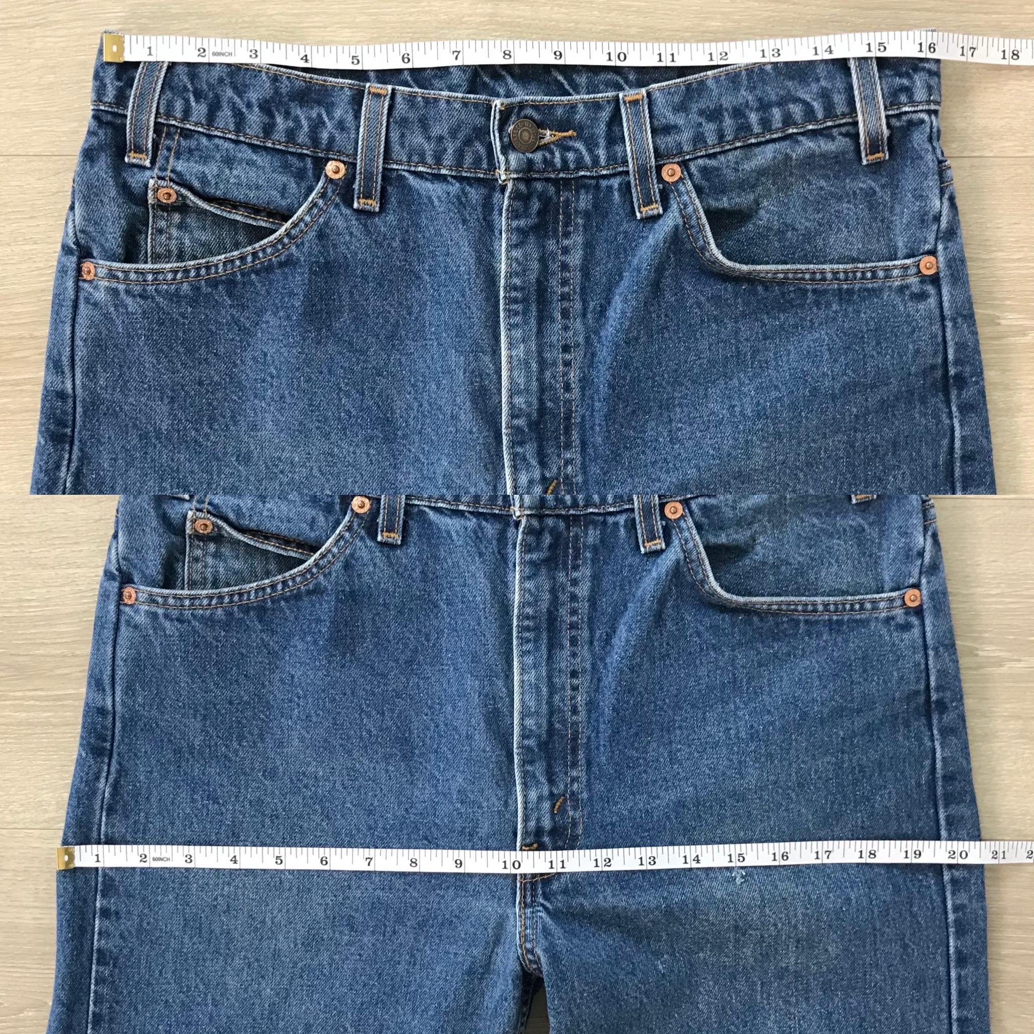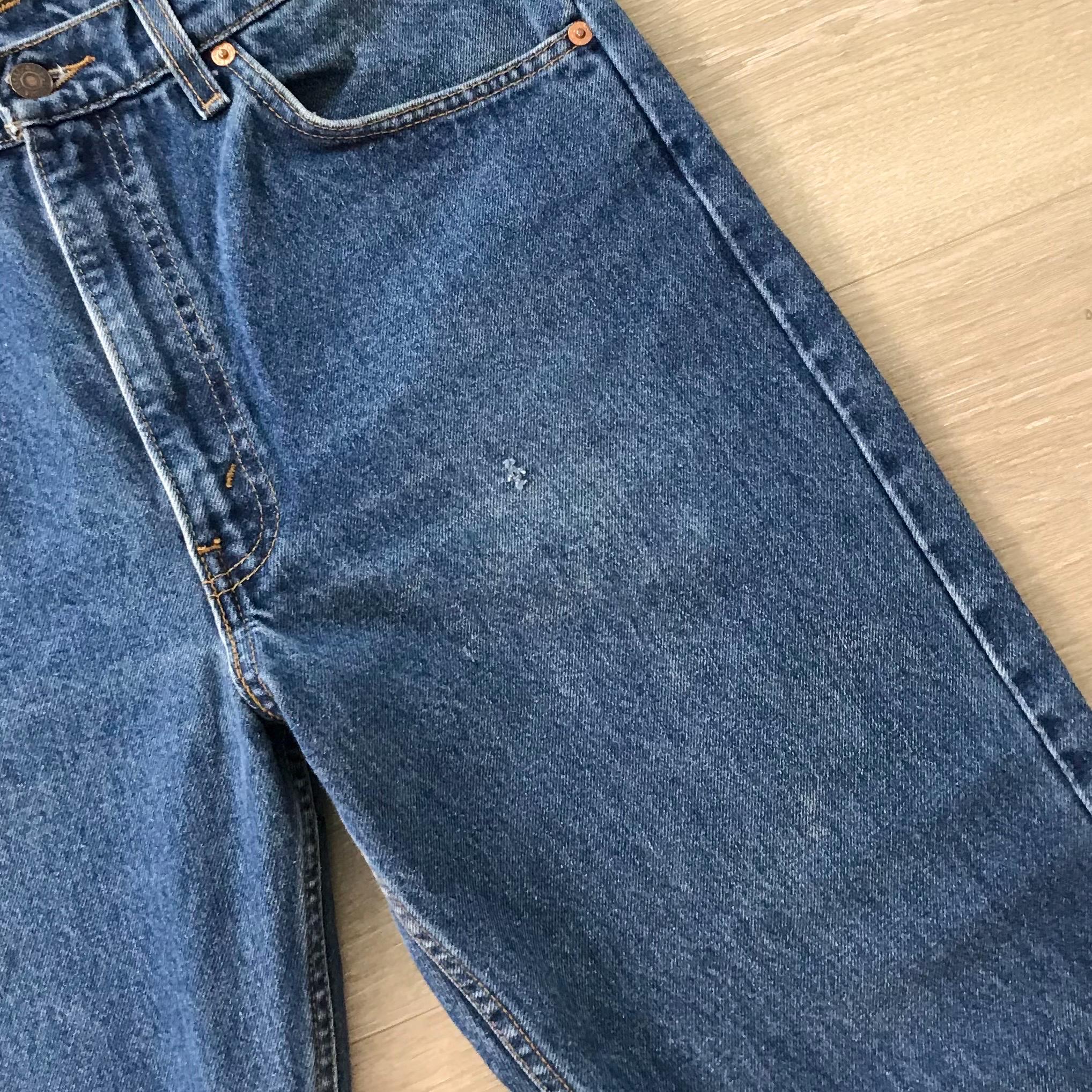 All denim has been cleaned/sanitized and item will be sent ready to wear! Jeans are 20+ years old and in great vintage condition with normal vintage characteristics. Fading, wear, small marks, twisted seams and general vintage character should be expected. Zoom to see condition detail in flat photos.