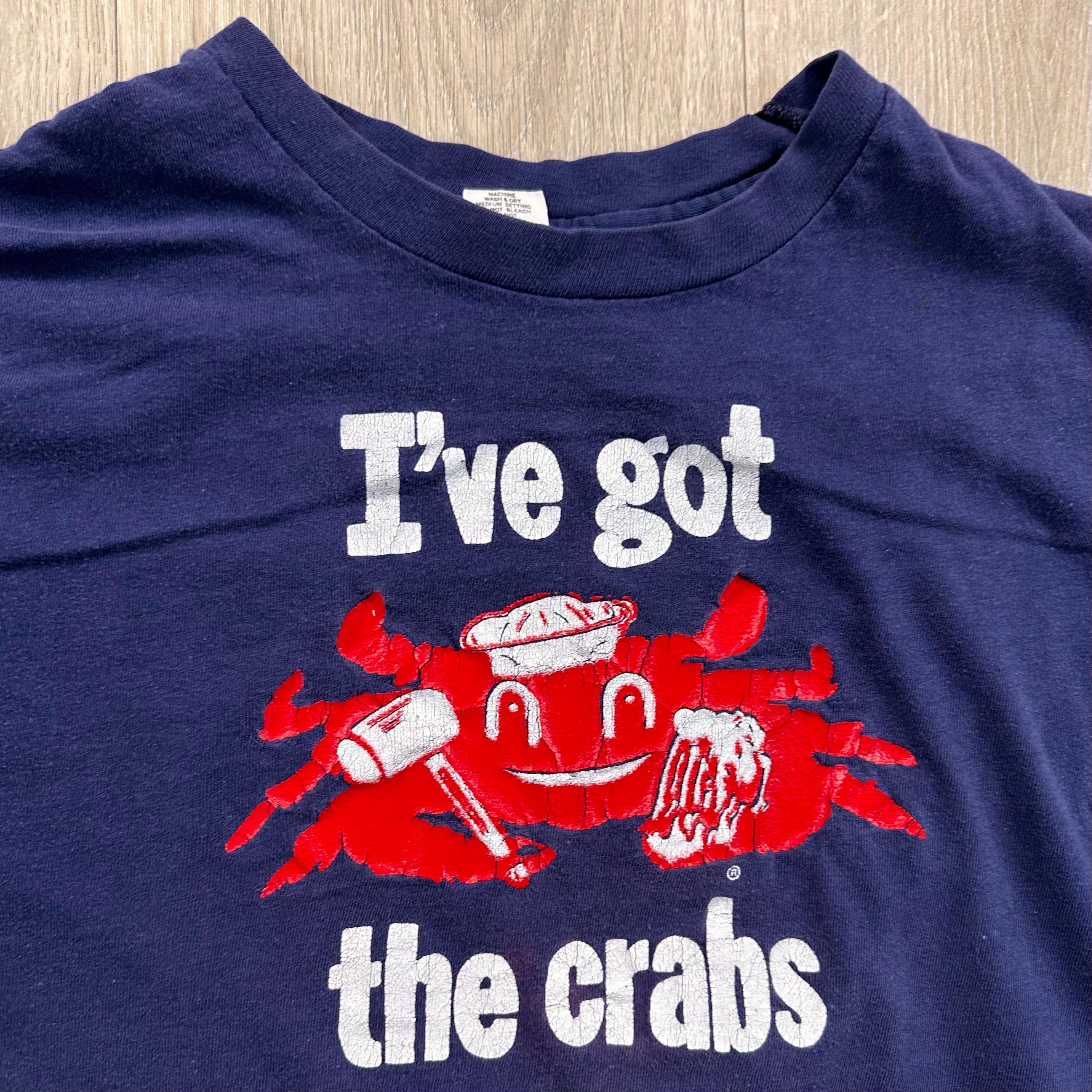 *Condition / Notable wear or flaws: Faded spot on front bottom / Crab was screen printed with a thicker paint, so there's a little natural wear from age to the graphic