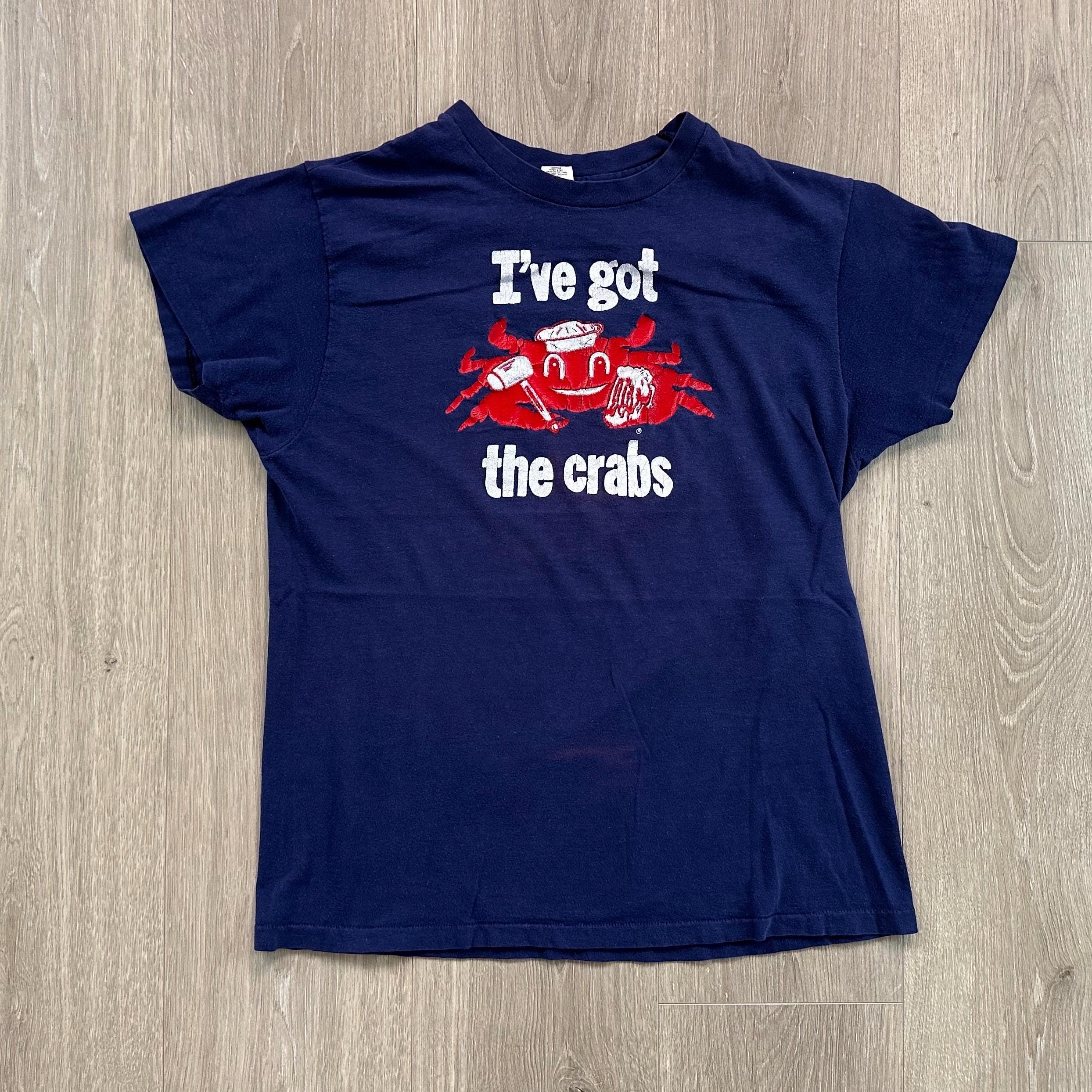Details: Crab graphic was screen printed with a thicker paint material (common in the 1970's!)