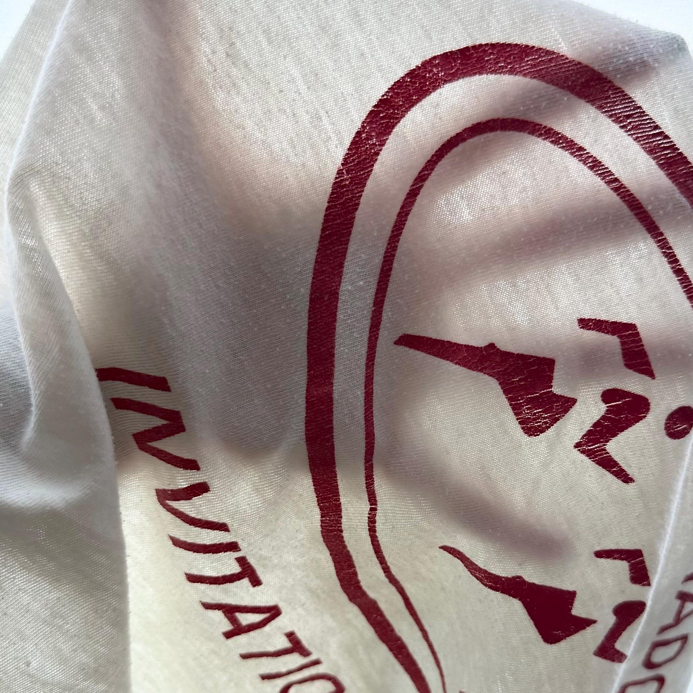 *Condition / Notable wear or flaws: Natural wear and light pilling, wear to graphic and some very faint discoloring at underarm (very light and hardly visible, not visible at all when worn). Graphic is off centered (common trait for vintage tees!)