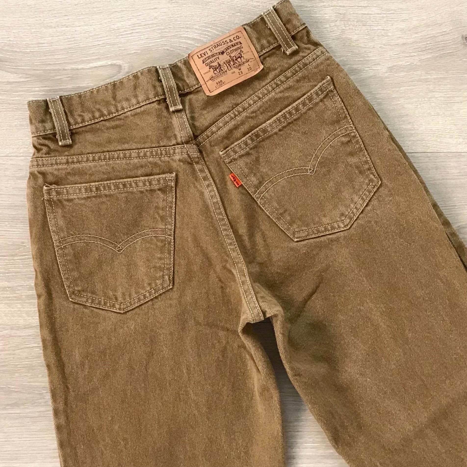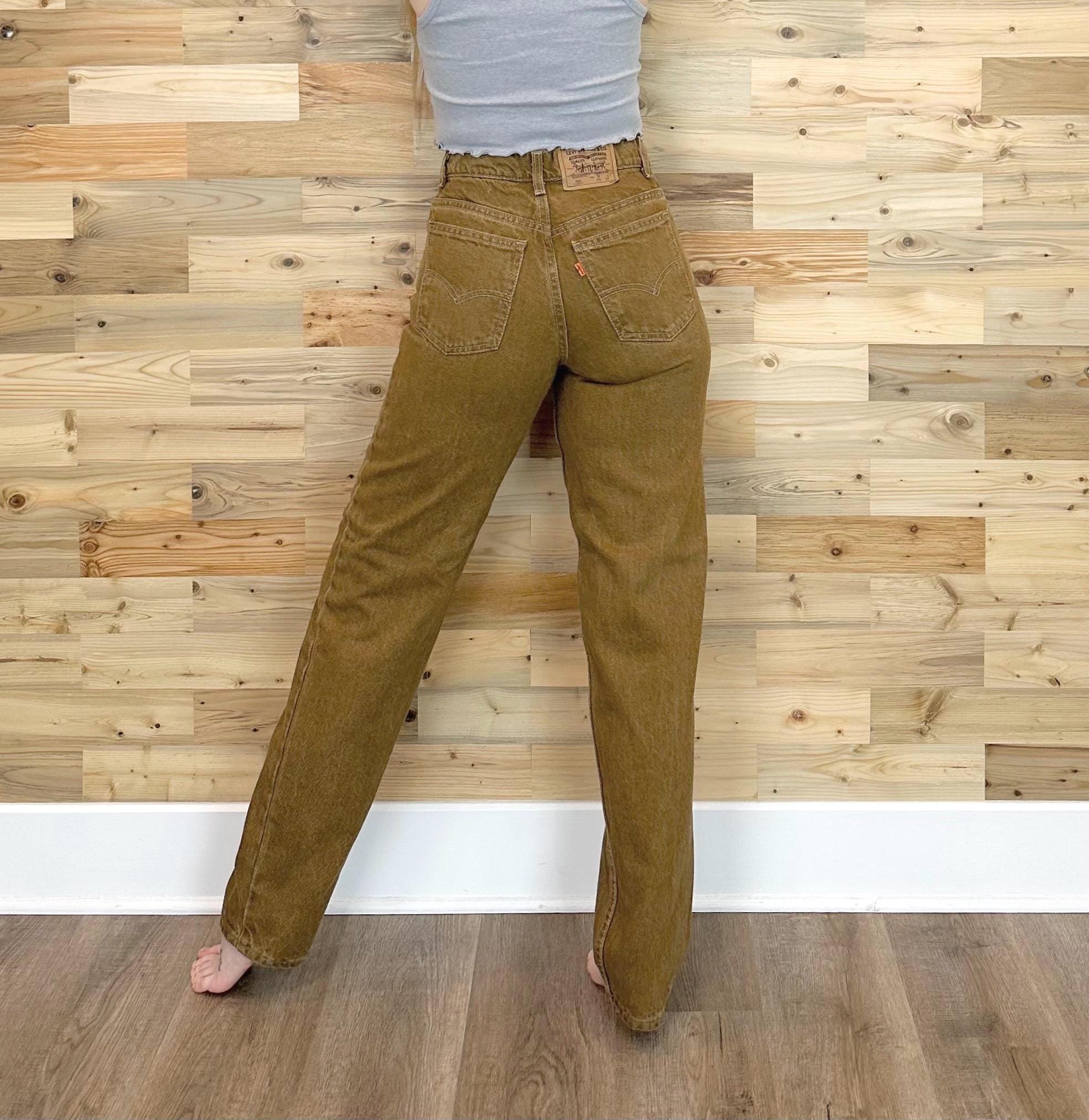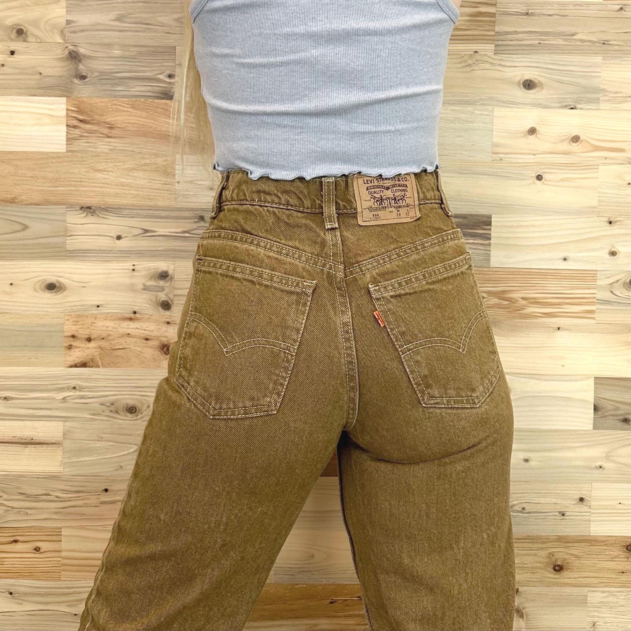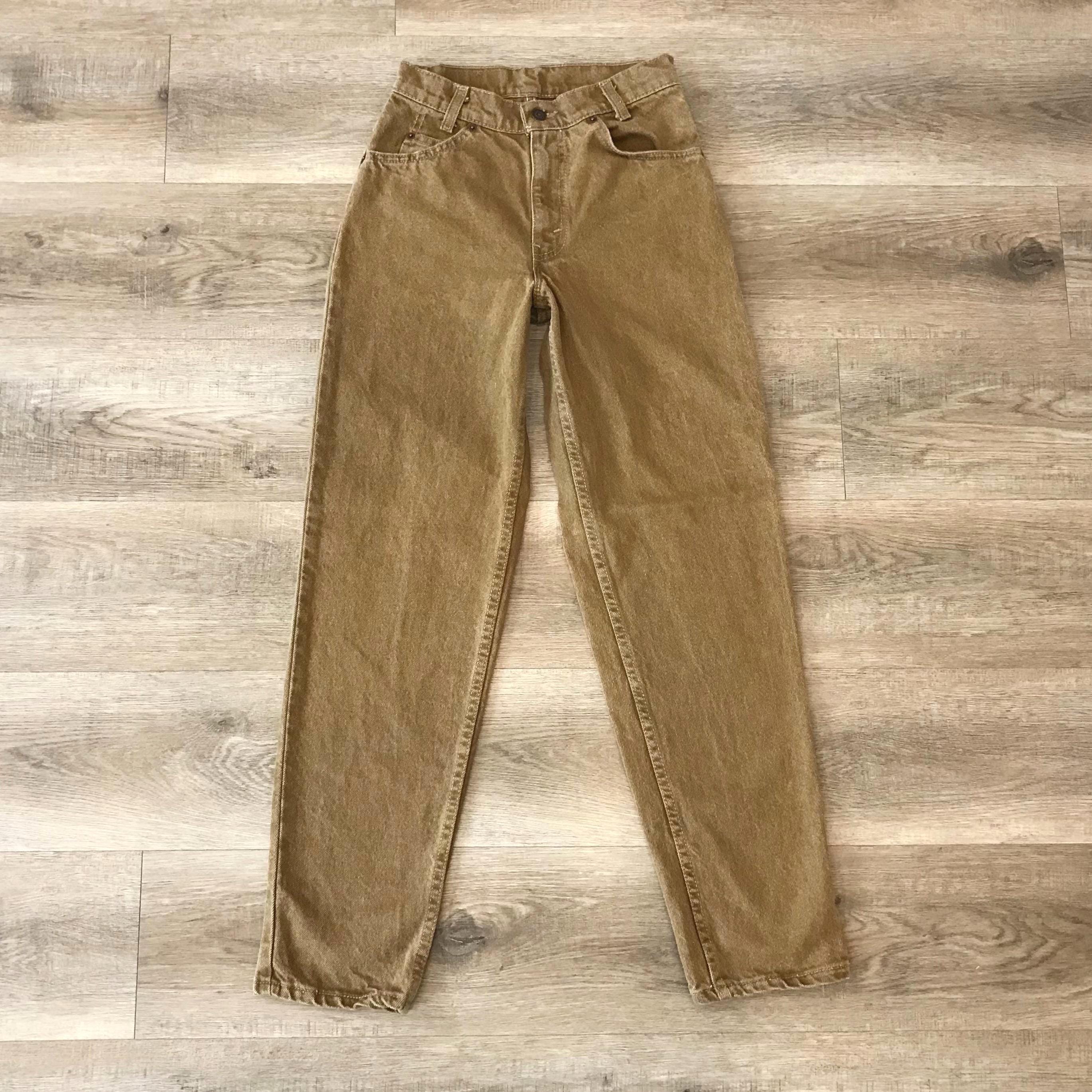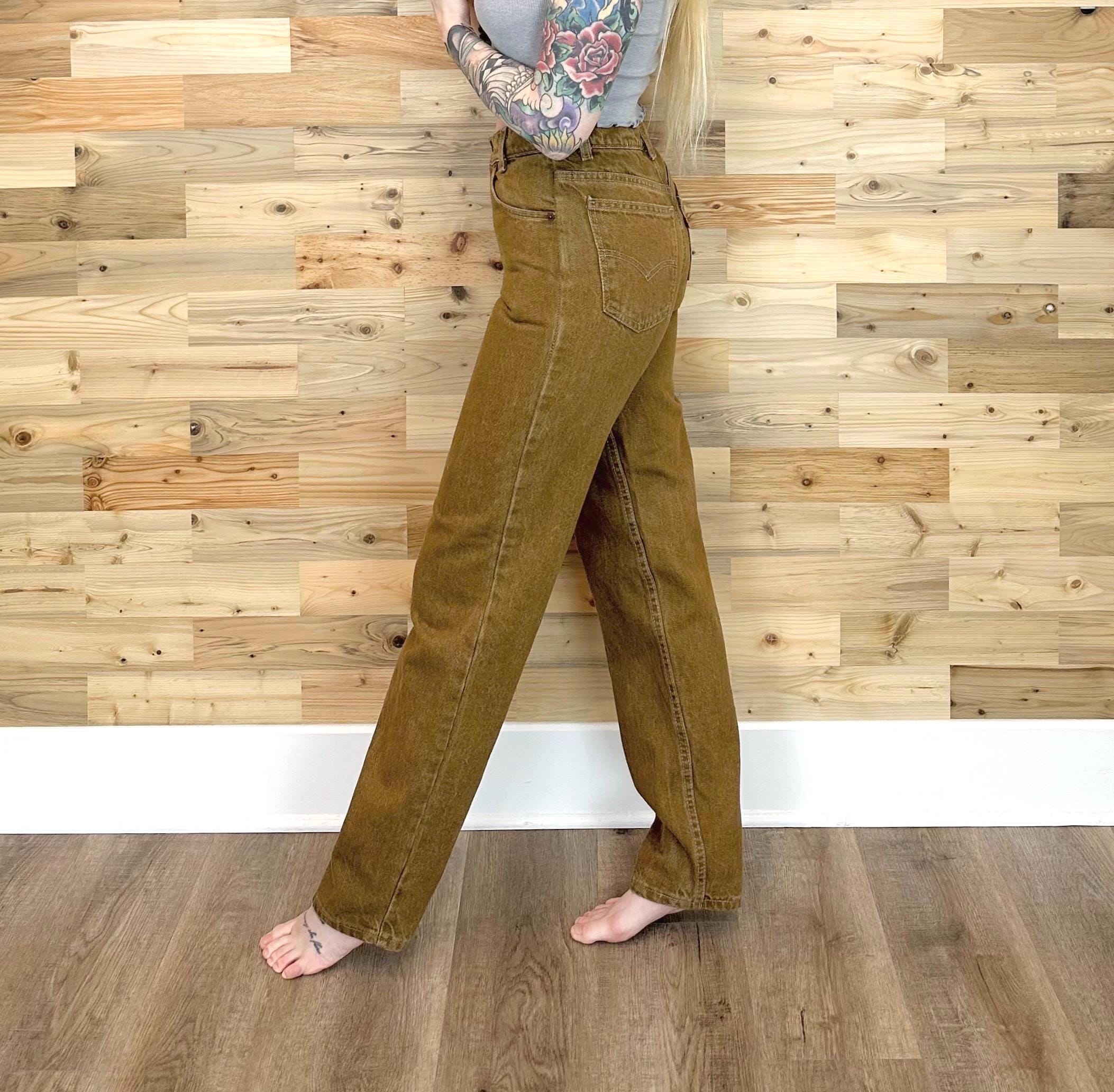 Details: Student fit Levi's typically have a slimmer fit through the hip and bum / Denim is a mustard-y dijon brown color / Jeans were deadstock brand new with original tags, but I've since removed the tags to give them a good soak (they were in storage for many years!)