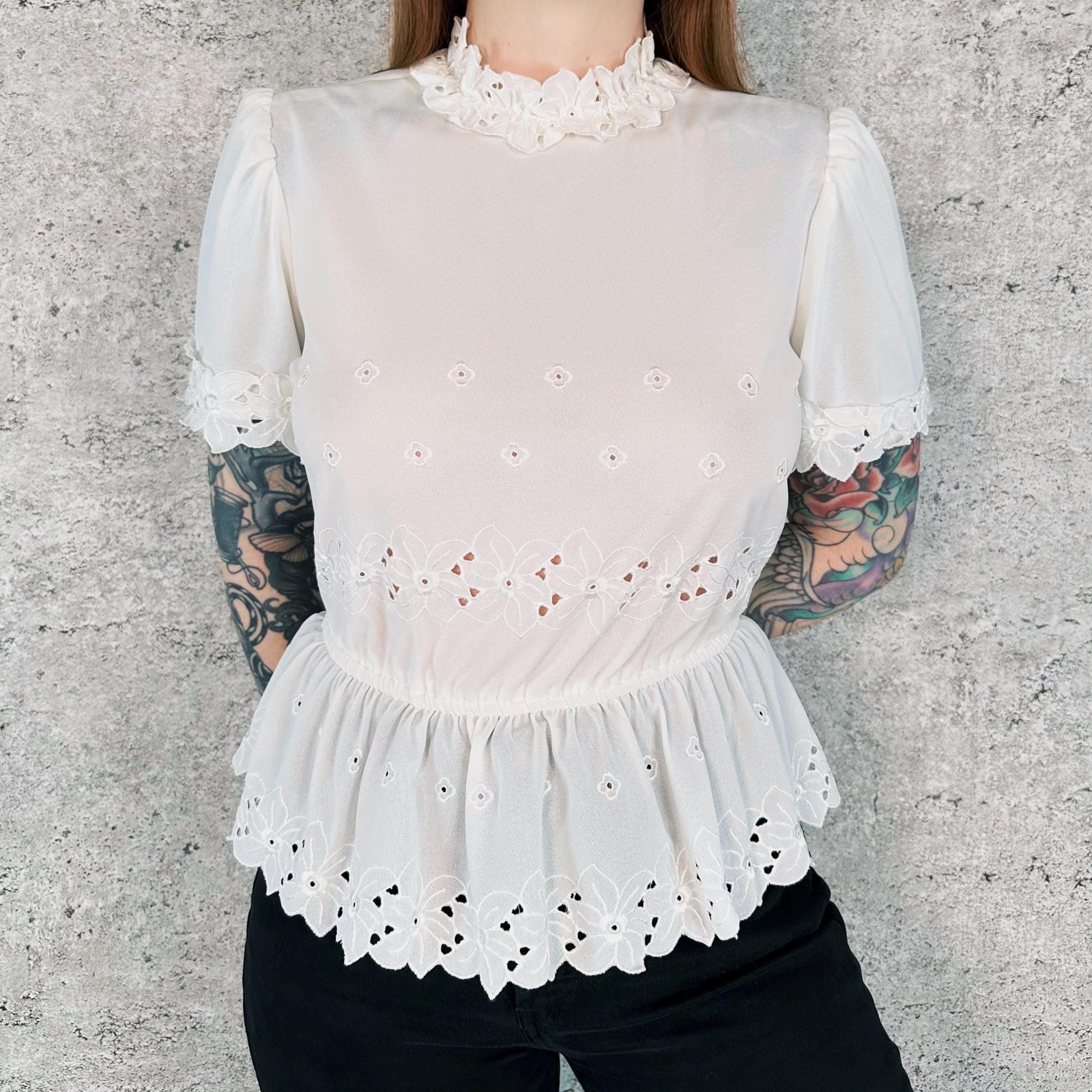 Details: Shirt has been washed and is ready to wear! / Neckline and waist have a hook and stitch loop closure
