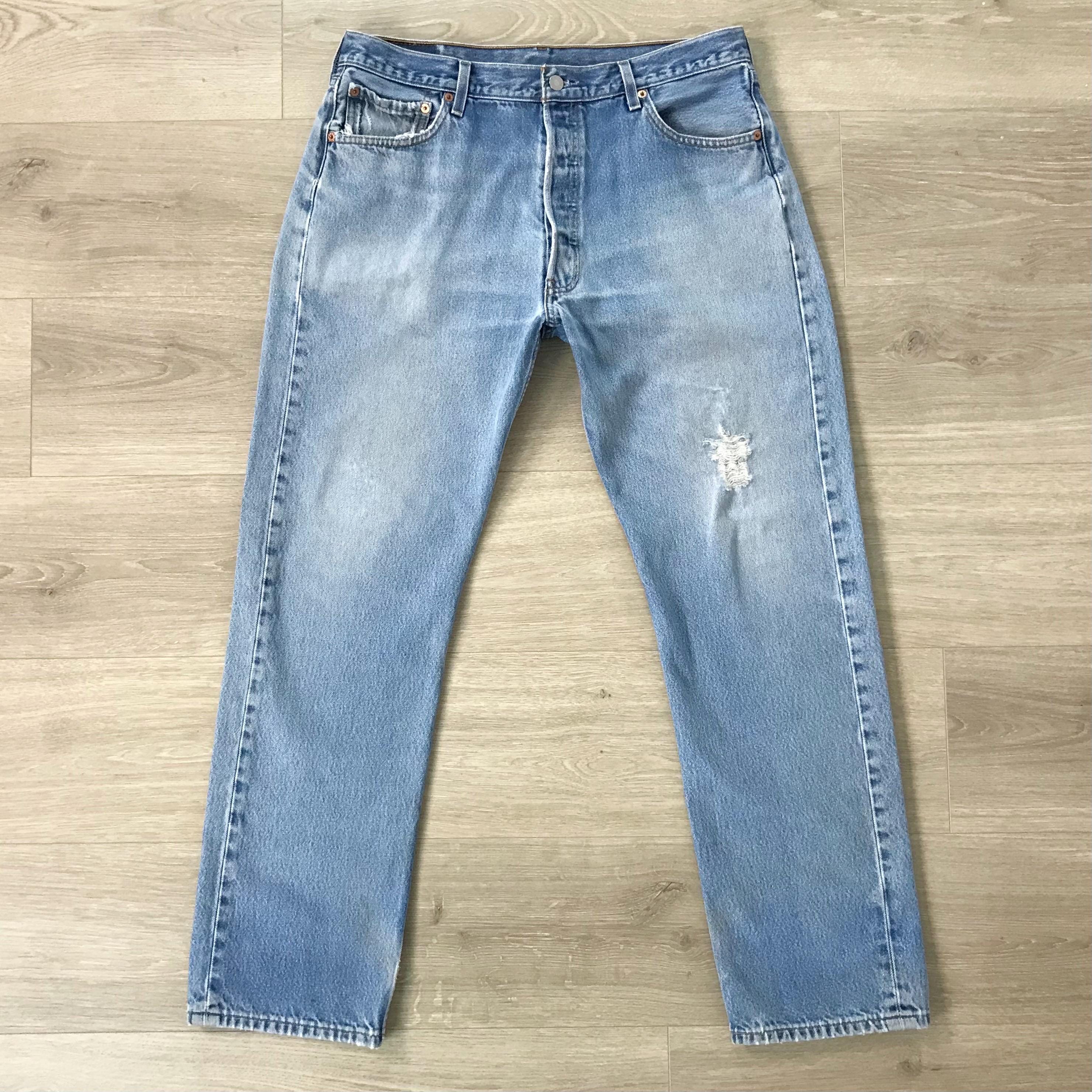 All denim has been cleaned/sanitized and item will be sent ready to wear! Jeans are 20+ years old and in great vintage condition with normal vintage characteristics. Fading, wear, small marks, twisted seams and general vintage character should be expected. Zoom to see condition detail in flat photos.