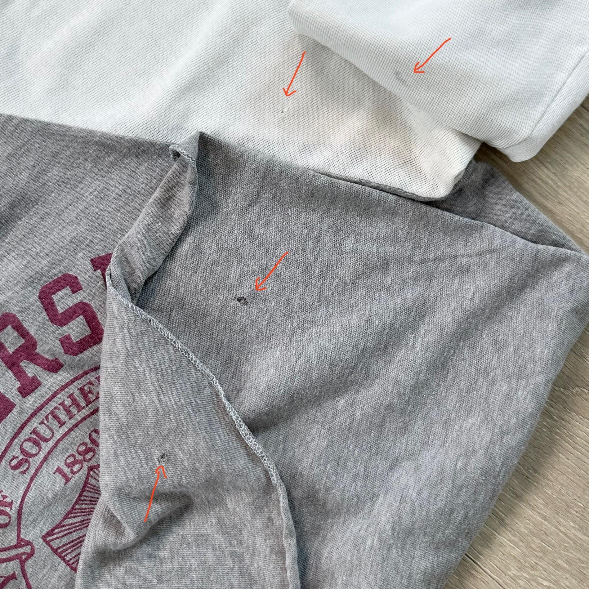 *Condition / Notable wear or flaws: Shirt is very old and has some natural wear, a few small pinholes, some very faint discoloring near underarm (very minimal and not visible at all when worn)
