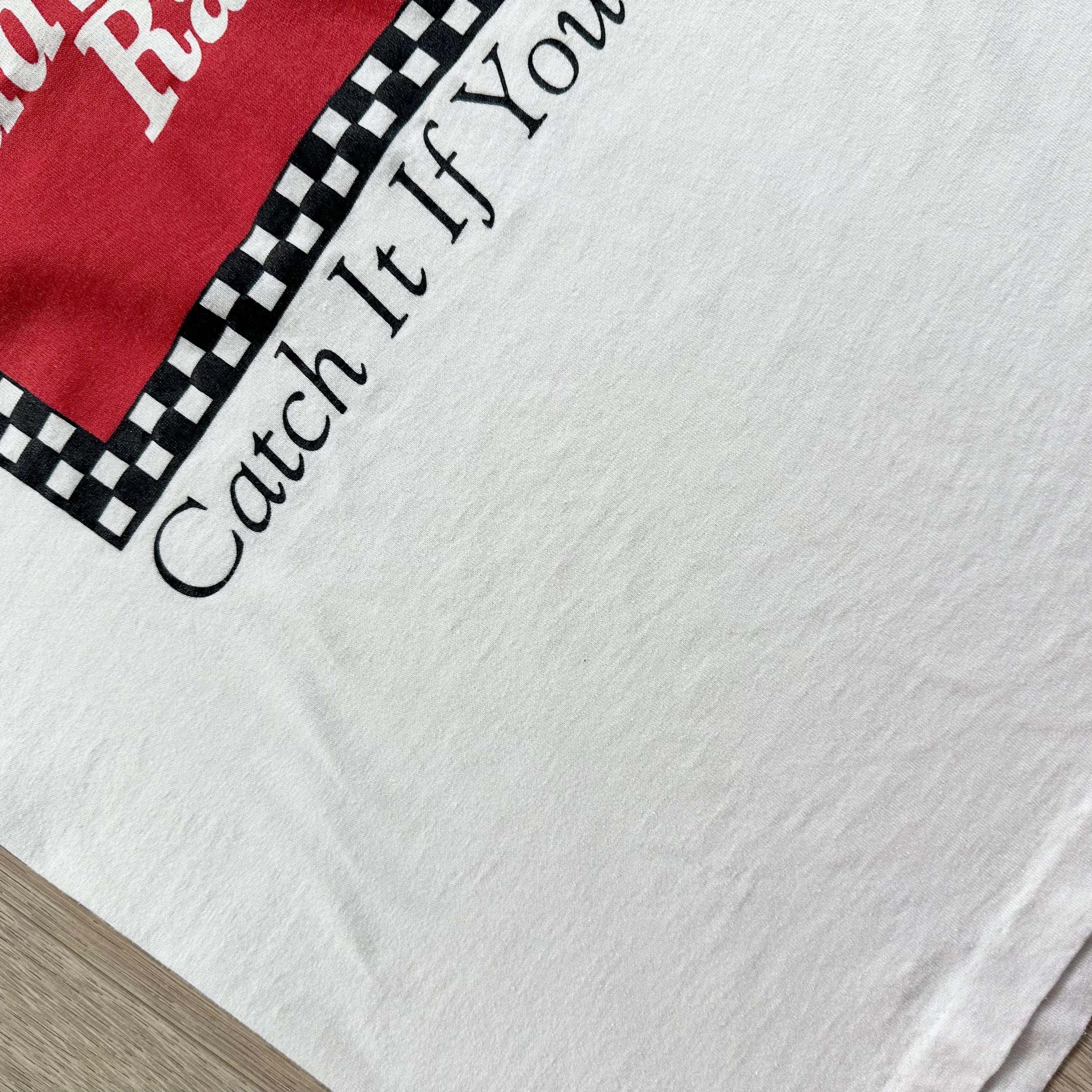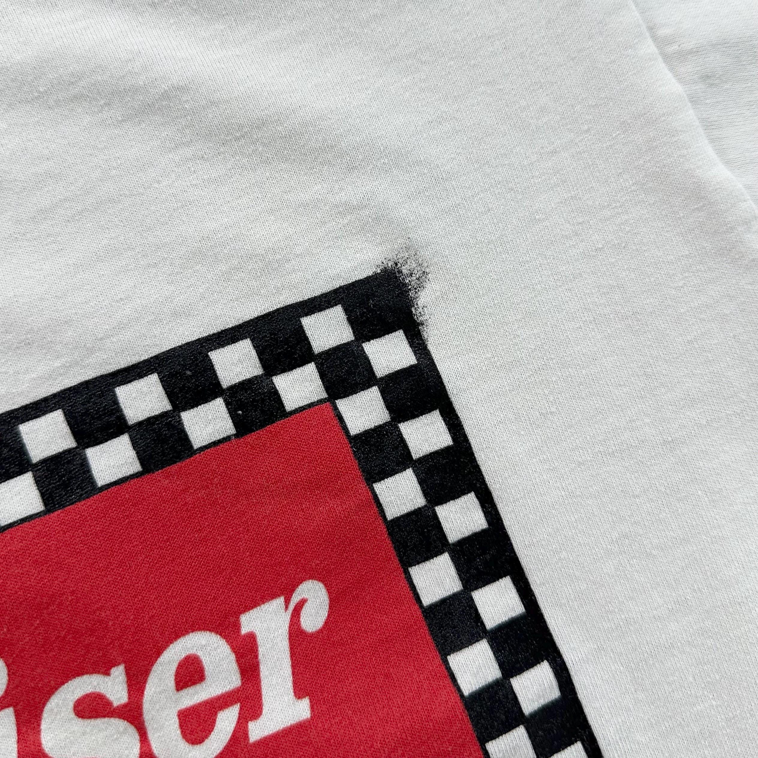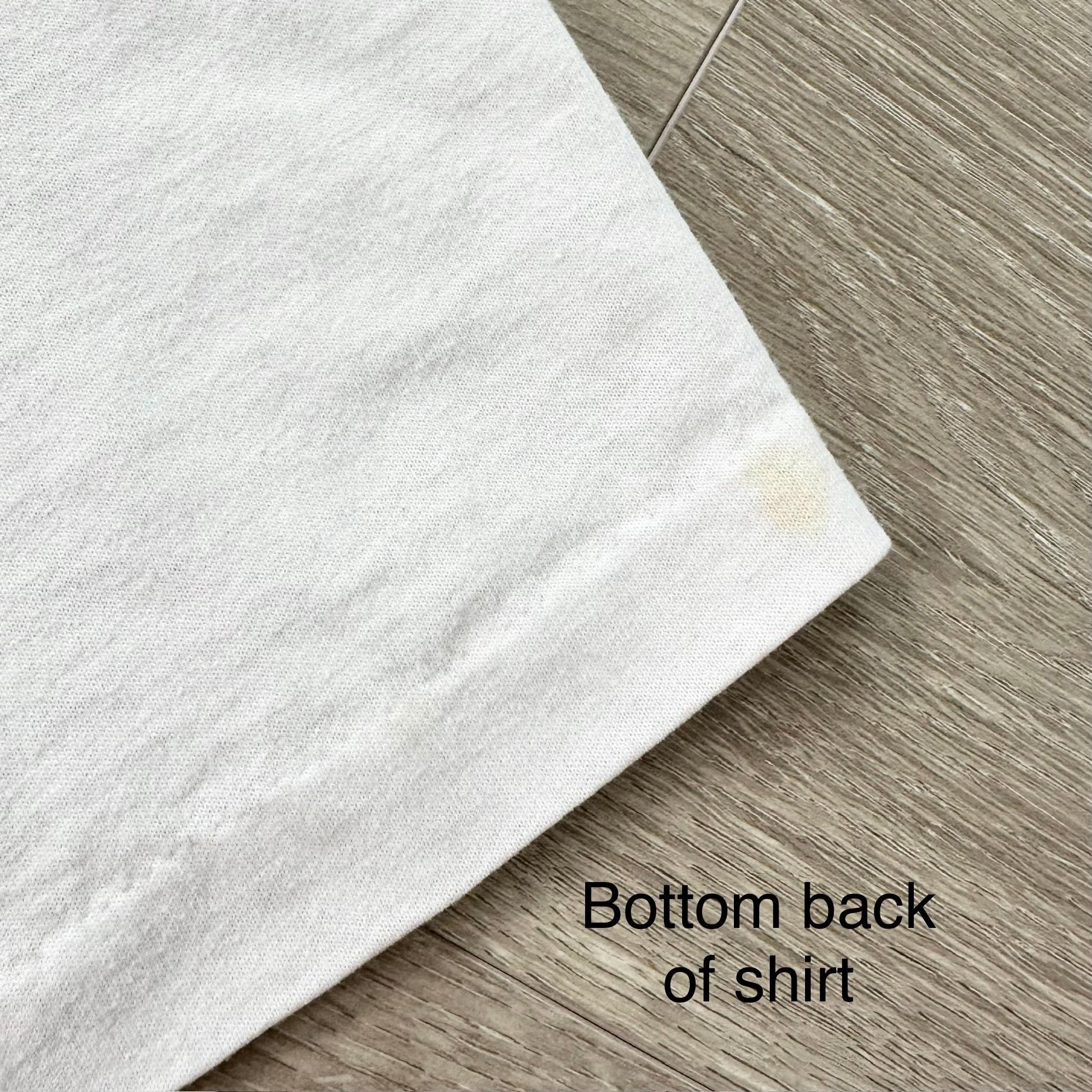 *Condition / Notable wear or flaws: Natural fading and wear, small misprint on top corner of graphic, small stain on bottom back corner, some faint marks (very light)