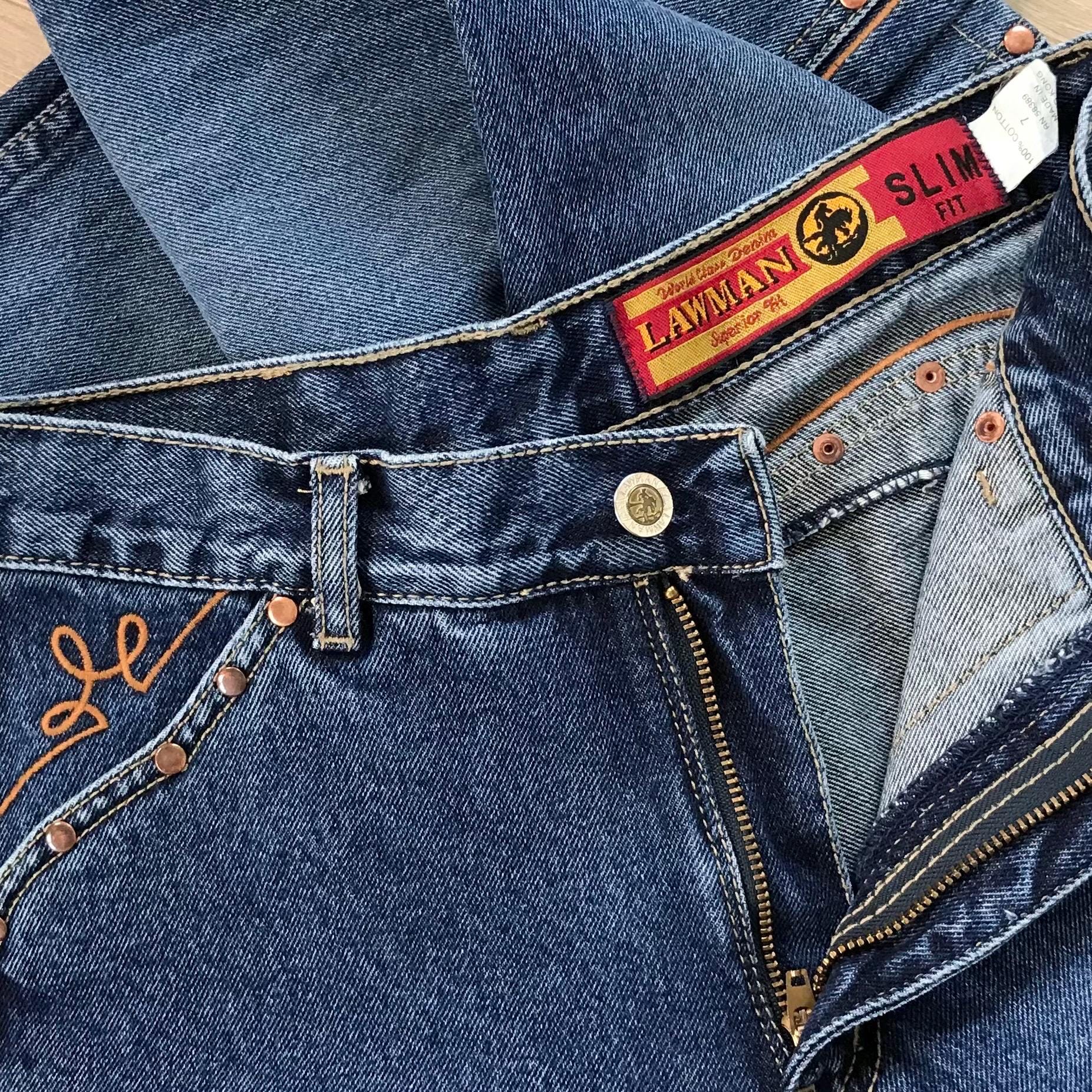 All denim has been cleaned/sanitized and item will be sent ready to wear! Jeans are 20+ years old and in great vintage condition with normal vintage characteristics. Fading, wear, small marks, twisted seams and general vintage character should be expected. Zoom to see condition detail in flat photos.