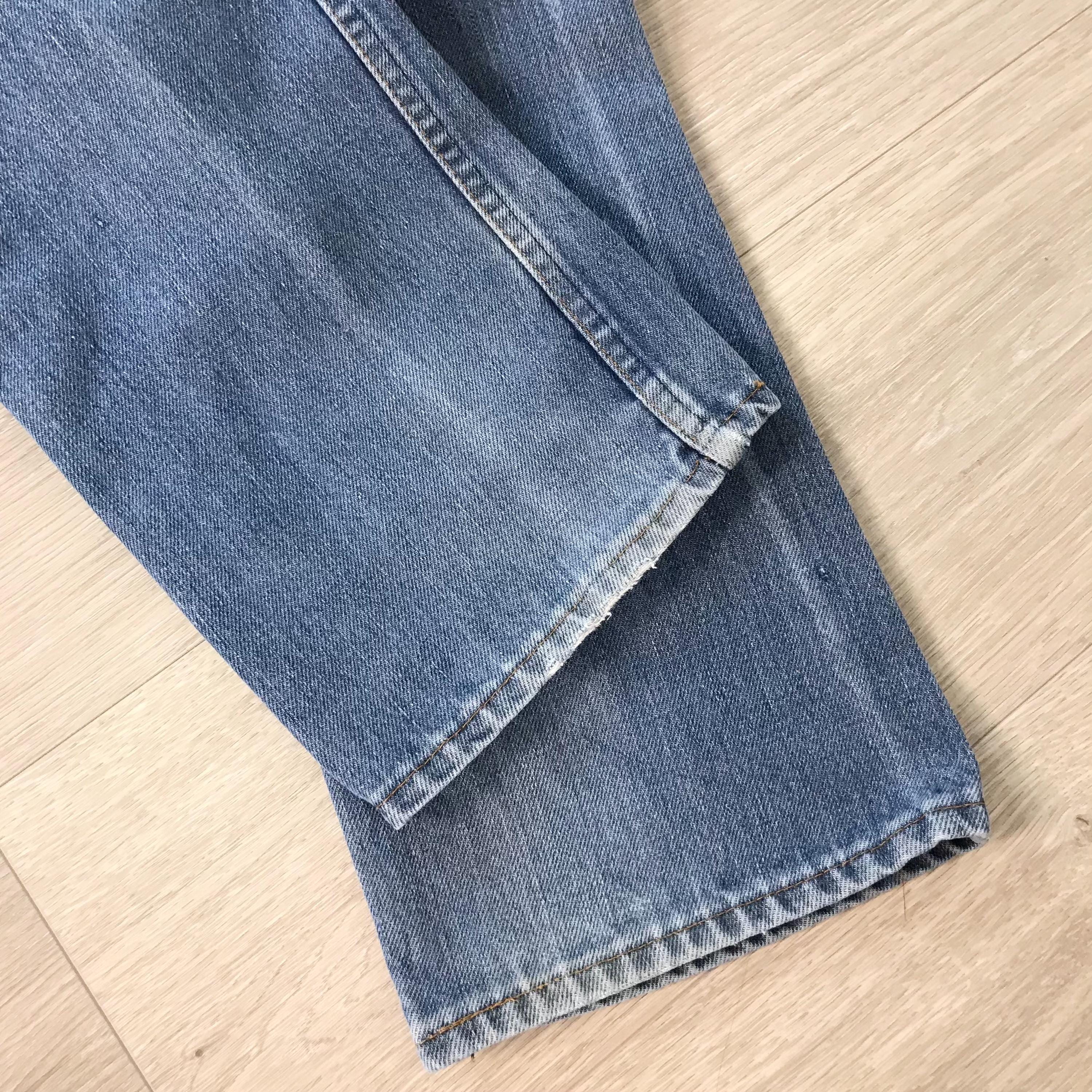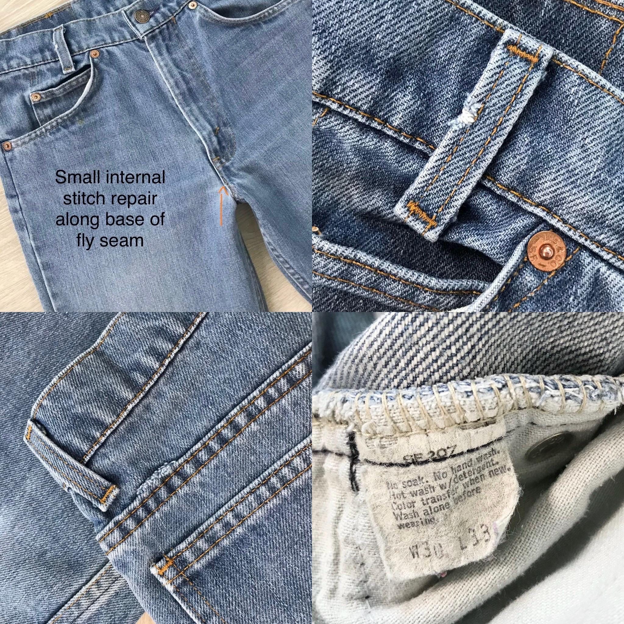 All denim has been cleaned/sanitized and item will be sent ready to wear! Jeans are 20+ years old and in great vintage condition with normal vintage characteristics. Fading, wear, small marks, twisted seams and general vintage character should be expected. Zoom to see condition detail in flat photos.