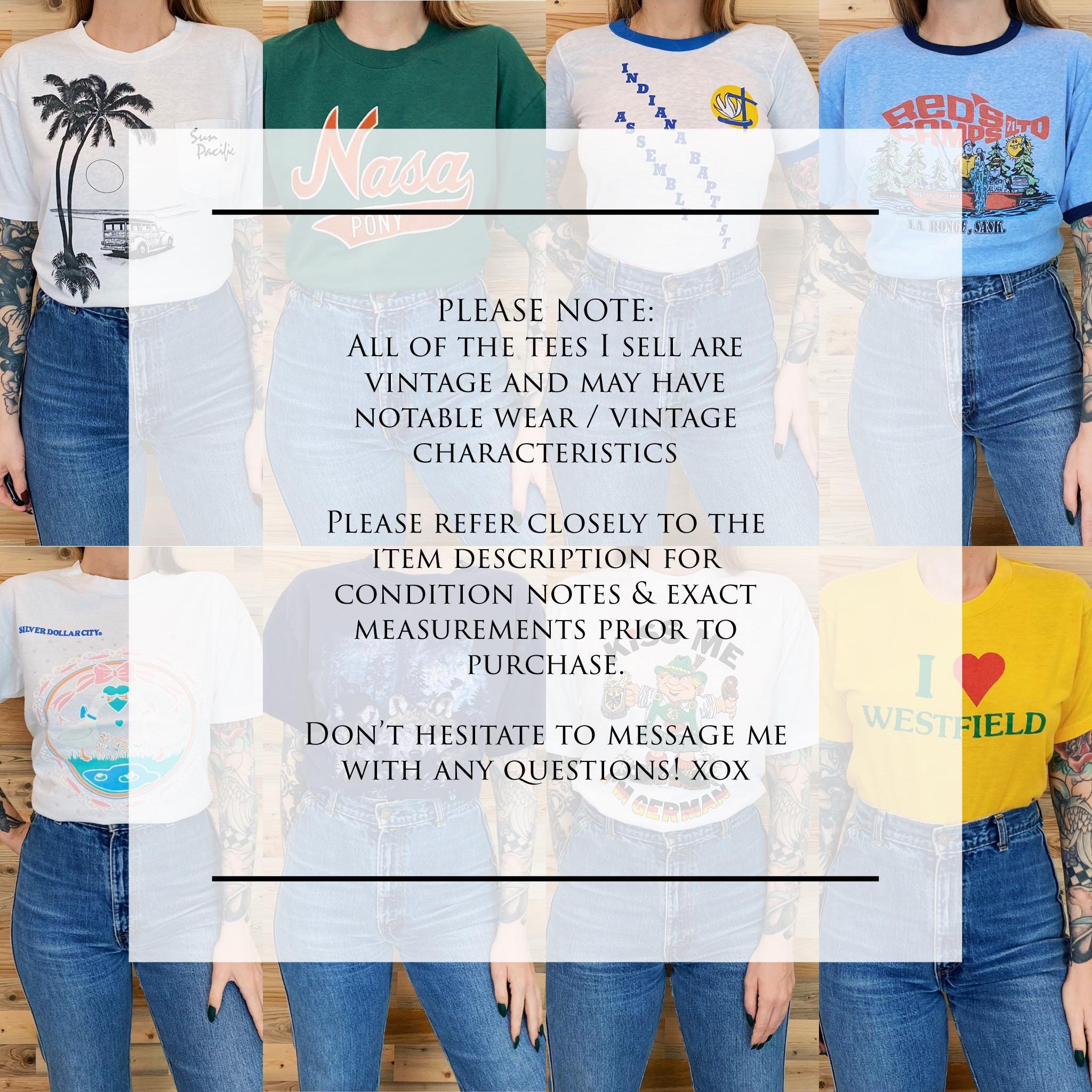 - Every body is proportioned differently. I carry a full range of sizes, so some items may be pinned or oversized/snug on the model. I do my best as to not alter the true fit/cut of the garment. Please refer to measurements, full item description and return policy prior to purchasing.