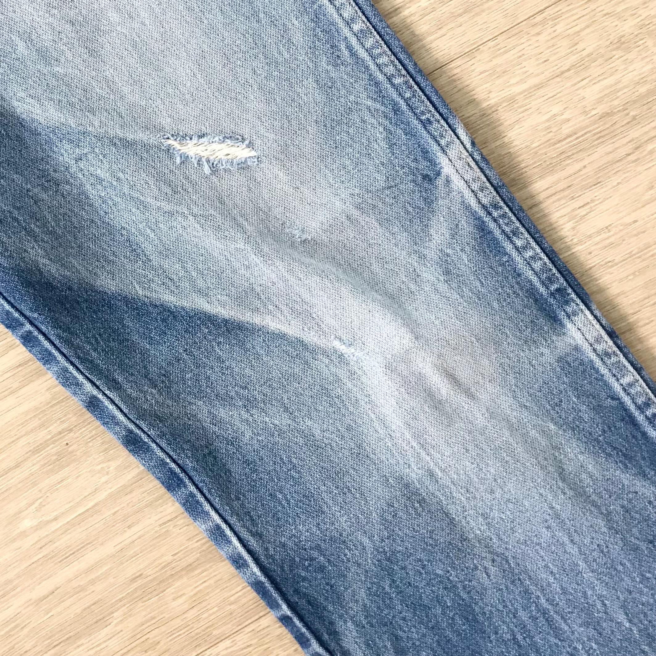 All denim has been cleaned/sanitized and item will be sent ready to wear! Jeans are 20+ years old and in great vintage condition with normal vintage characteristics. Fading, wear, small marks, twisted seams and general vintage character should be expected. Zoom to see condition detail in flat photos.