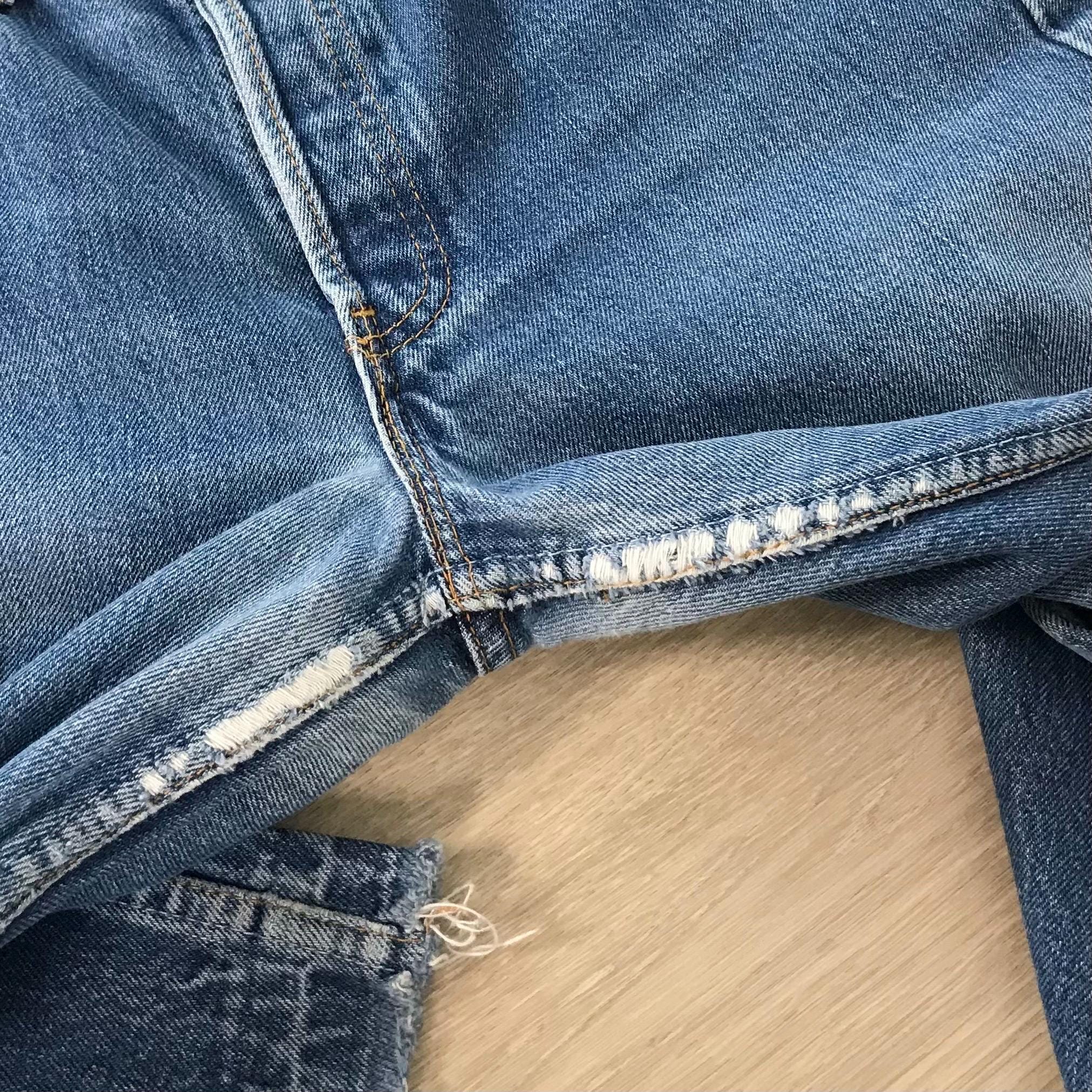 *Condition / Notable wear or flaws: Natural fading and wear, raw undone hem, some wear along inner thigh seams