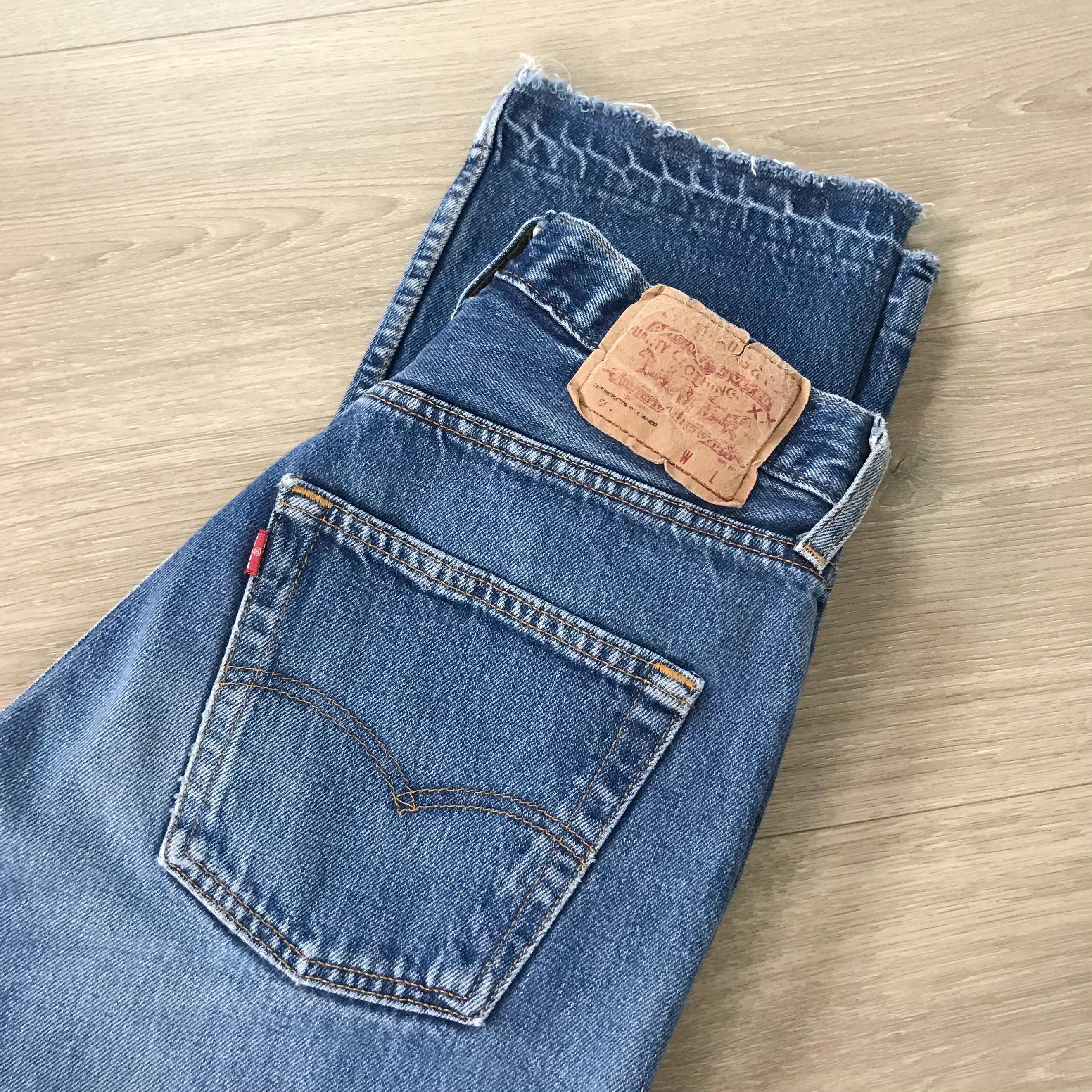 All denim has been cleaned/sanitized and item will be sent ready to wear! Jeans are 20+ years old and in great vintage condition with normal vintage characteristics. Fading, wear, small marks, twisted seams and general vintage character should be expected. Zoom to see condition detail in flat photos.
