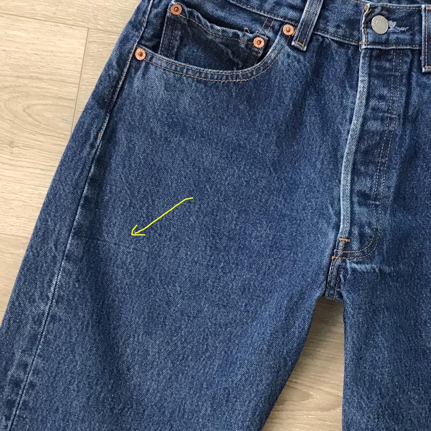 *Condition / Notable wear or flaws: Subtle fading at knees (cool vintage look!), tiny faint stitch line on thigh (very subtle)