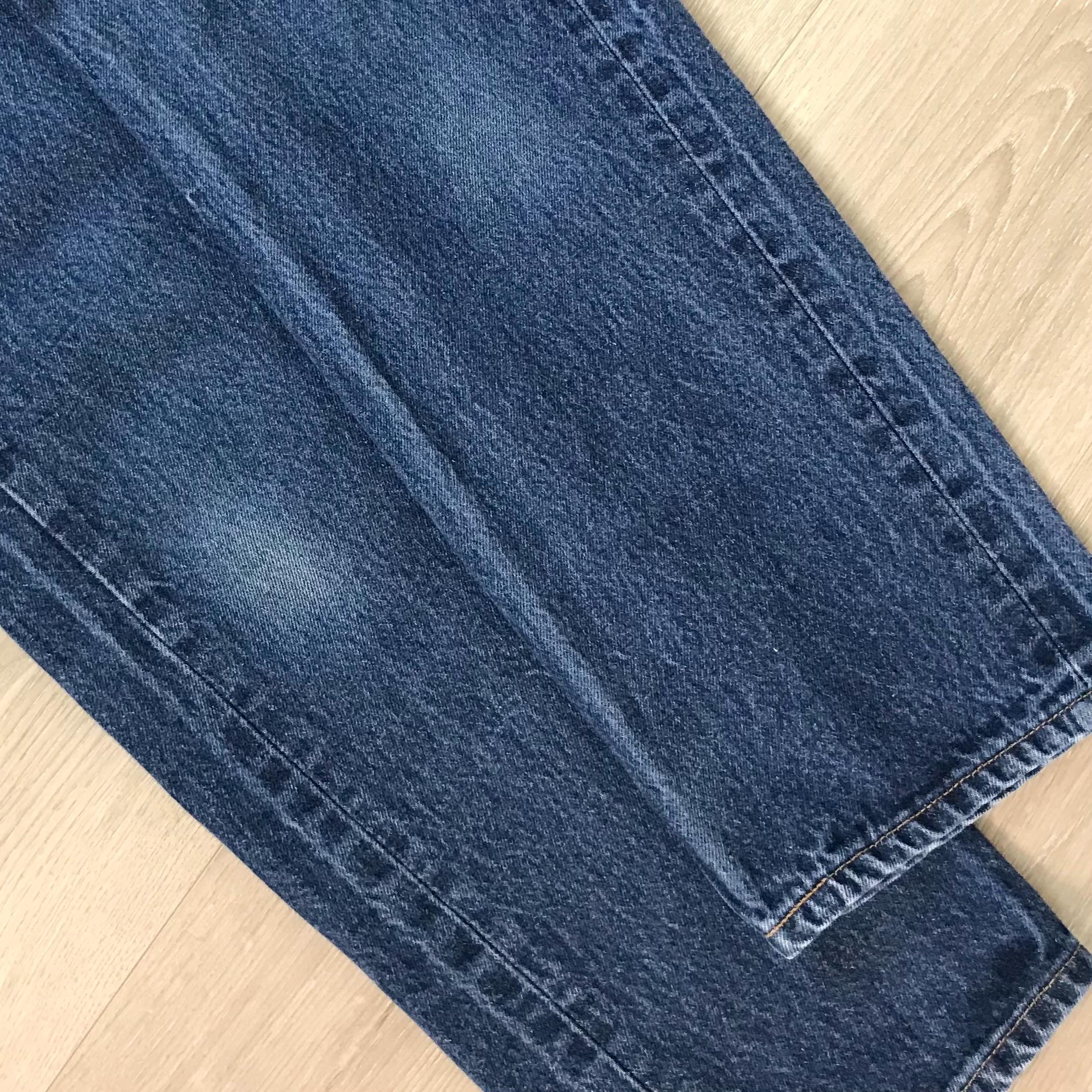 All denim has been cleaned/sanitized and item will be sent ready to wear! Jeans are 20+ years old and in great vintage condition with normal vintage characteristics. Fading, wear, small marks, twisted seams and general vintage character should be expected. Zoom to see condition detail in flat photos.