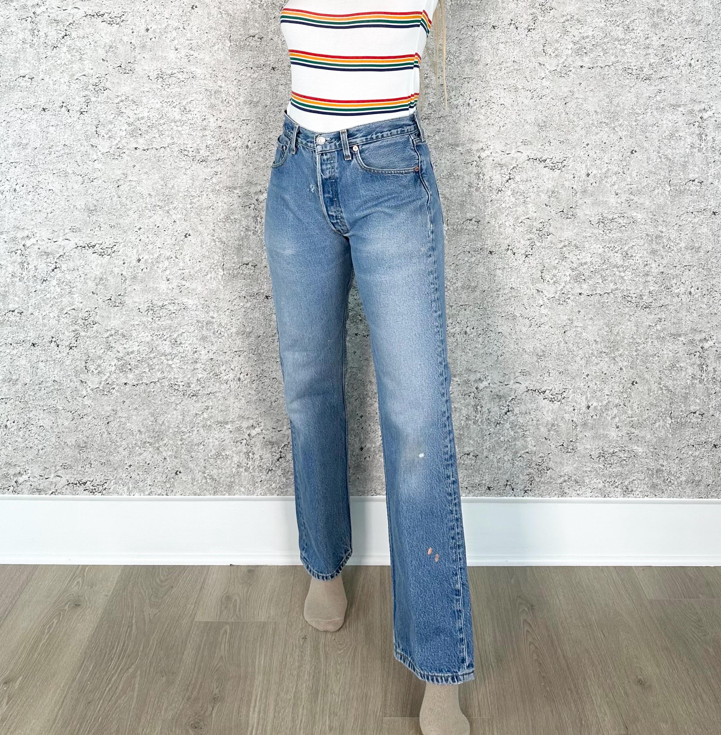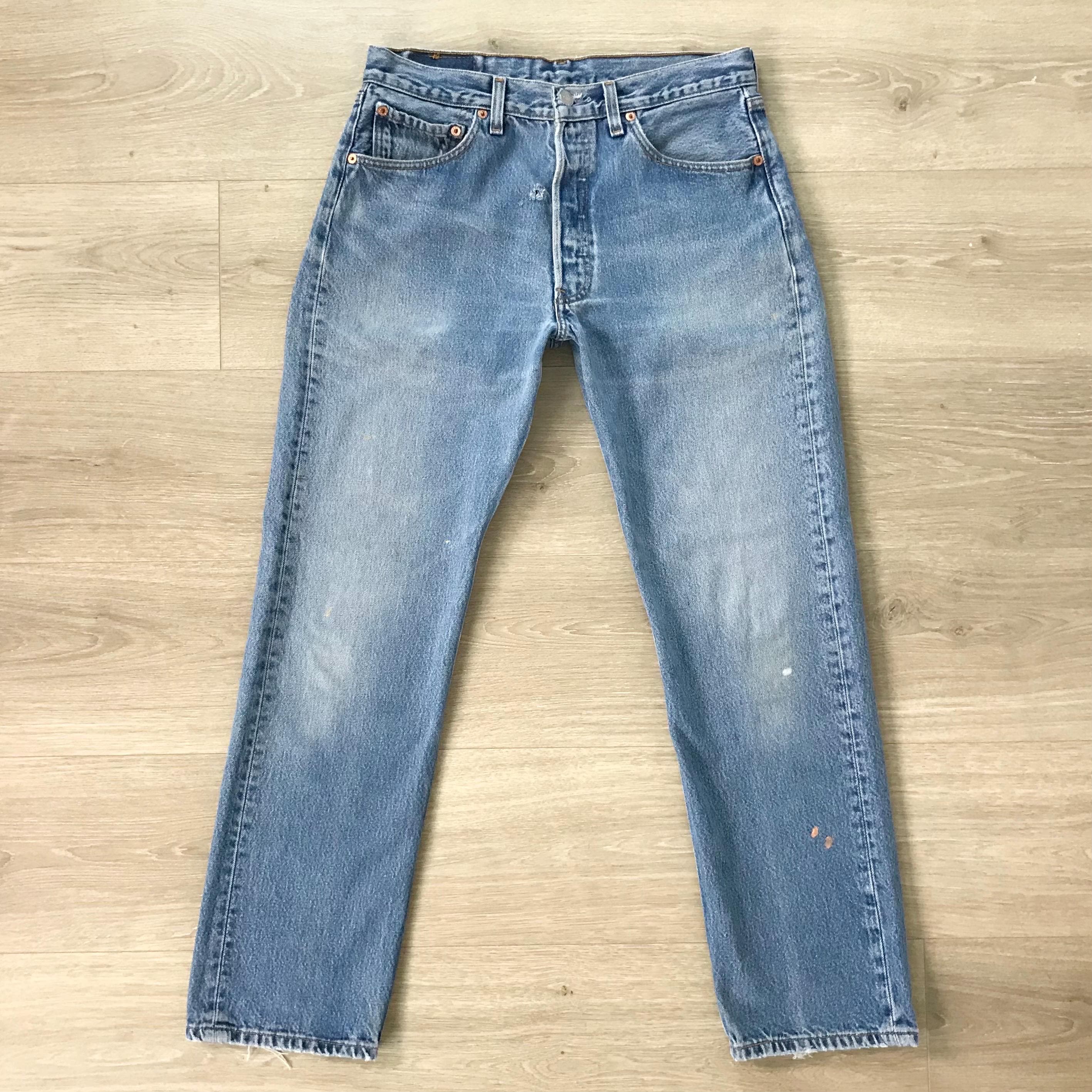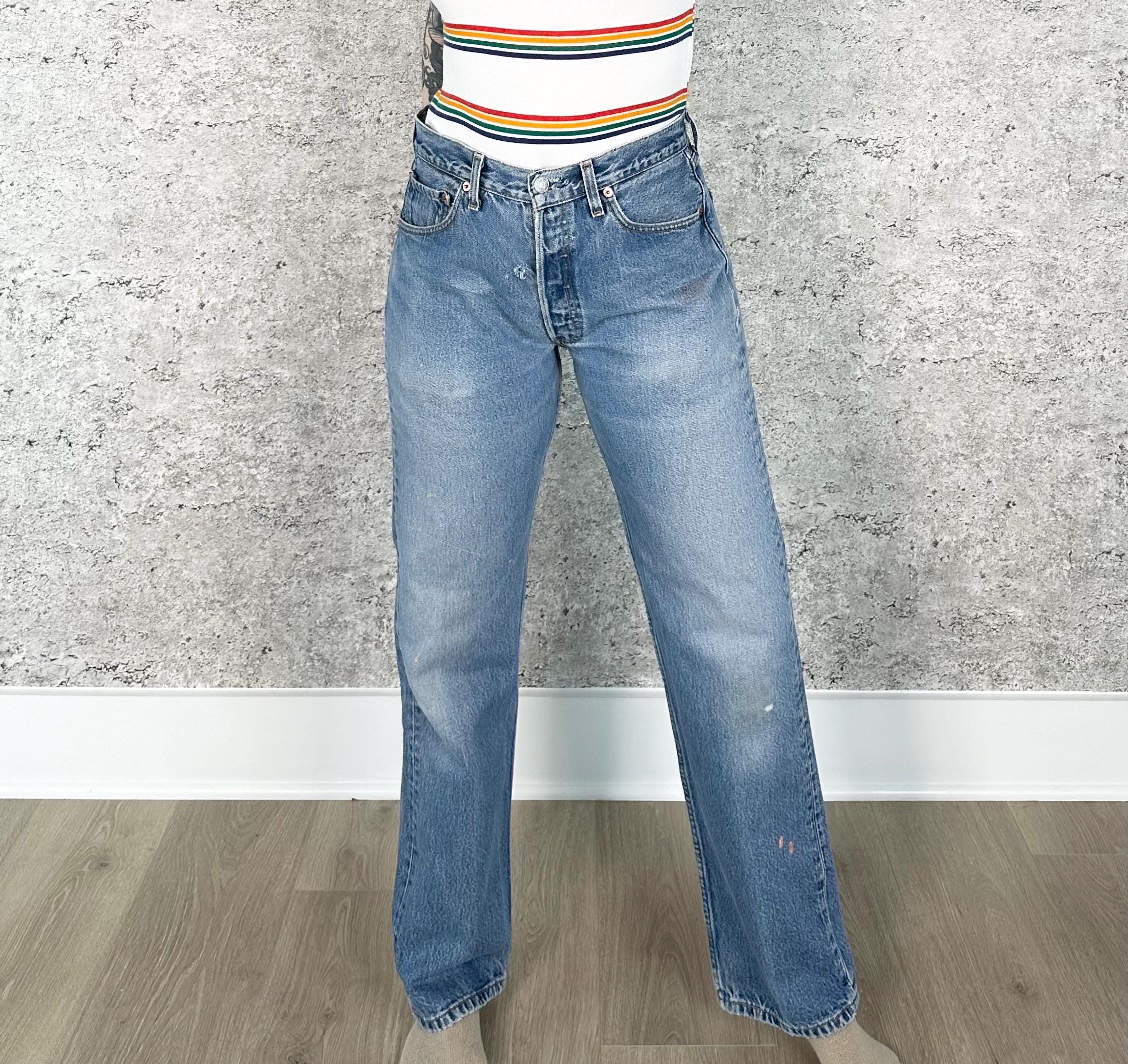 All denim has been cleaned/sanitized and item will be sent ready to wear! Jeans are 20+ years old and in great vintage condition with normal vintage characteristics. Fading, wear, small marks, twisted seams and general vintage character should be expected. Zoom to see condition detail in flat photos.