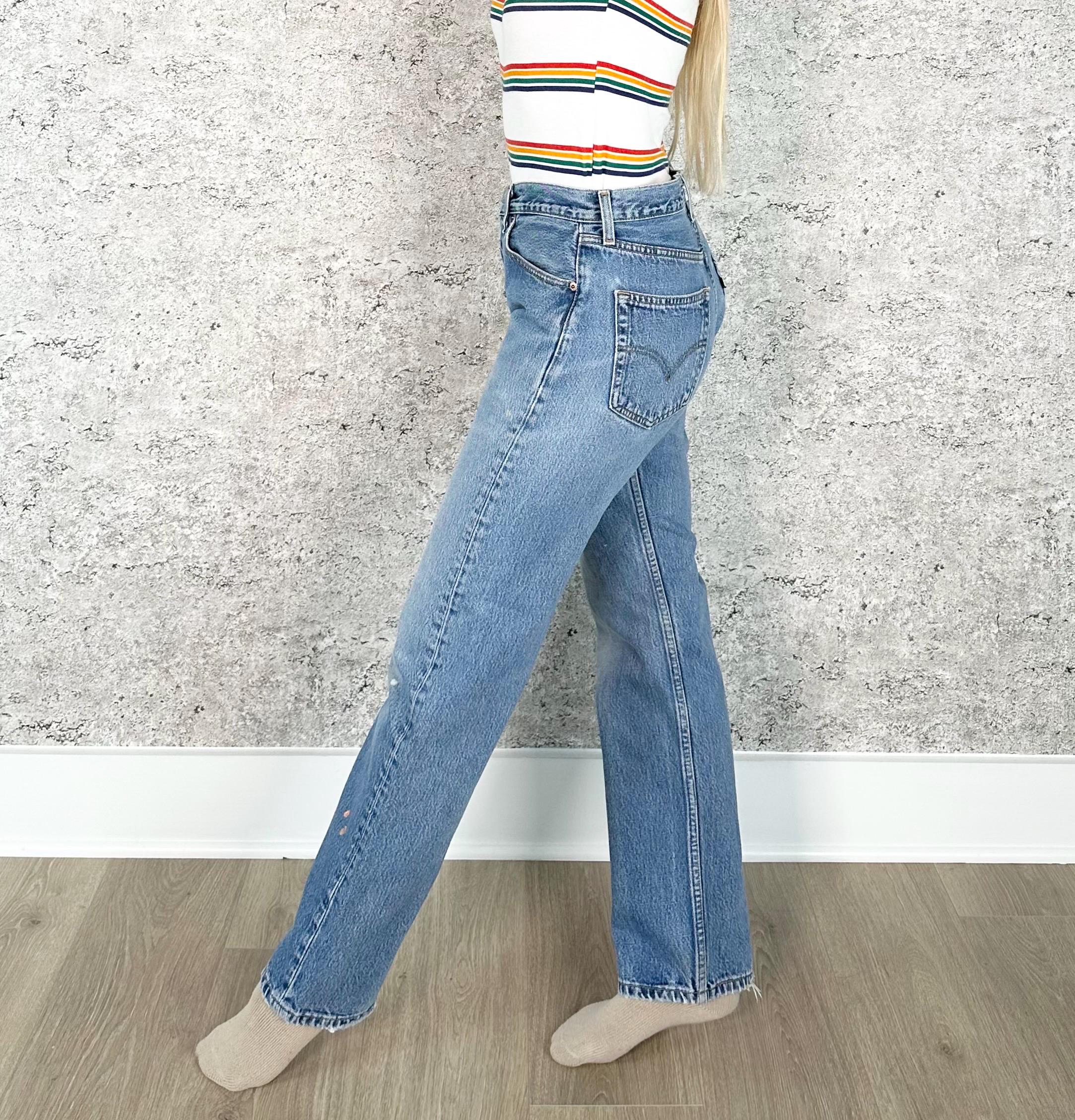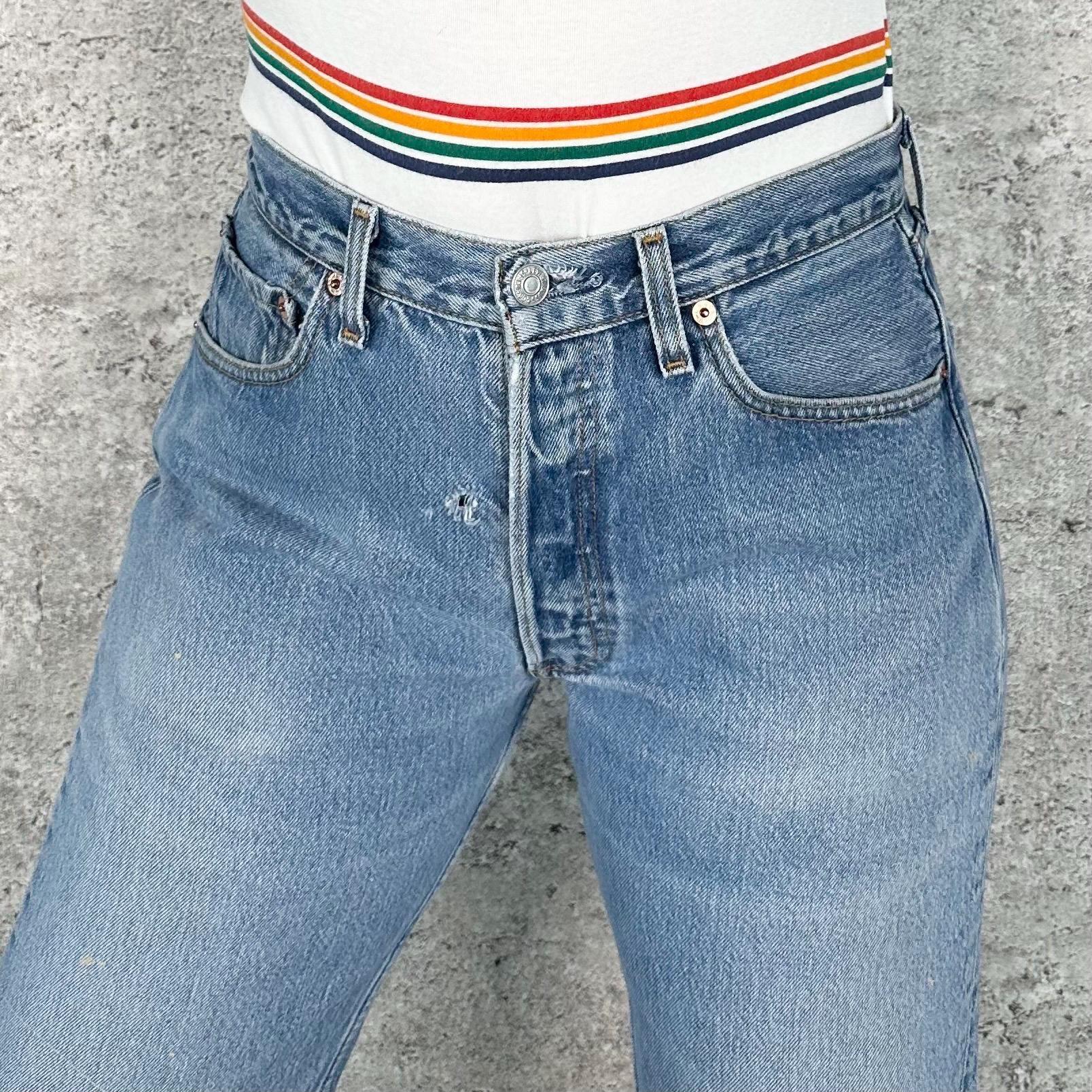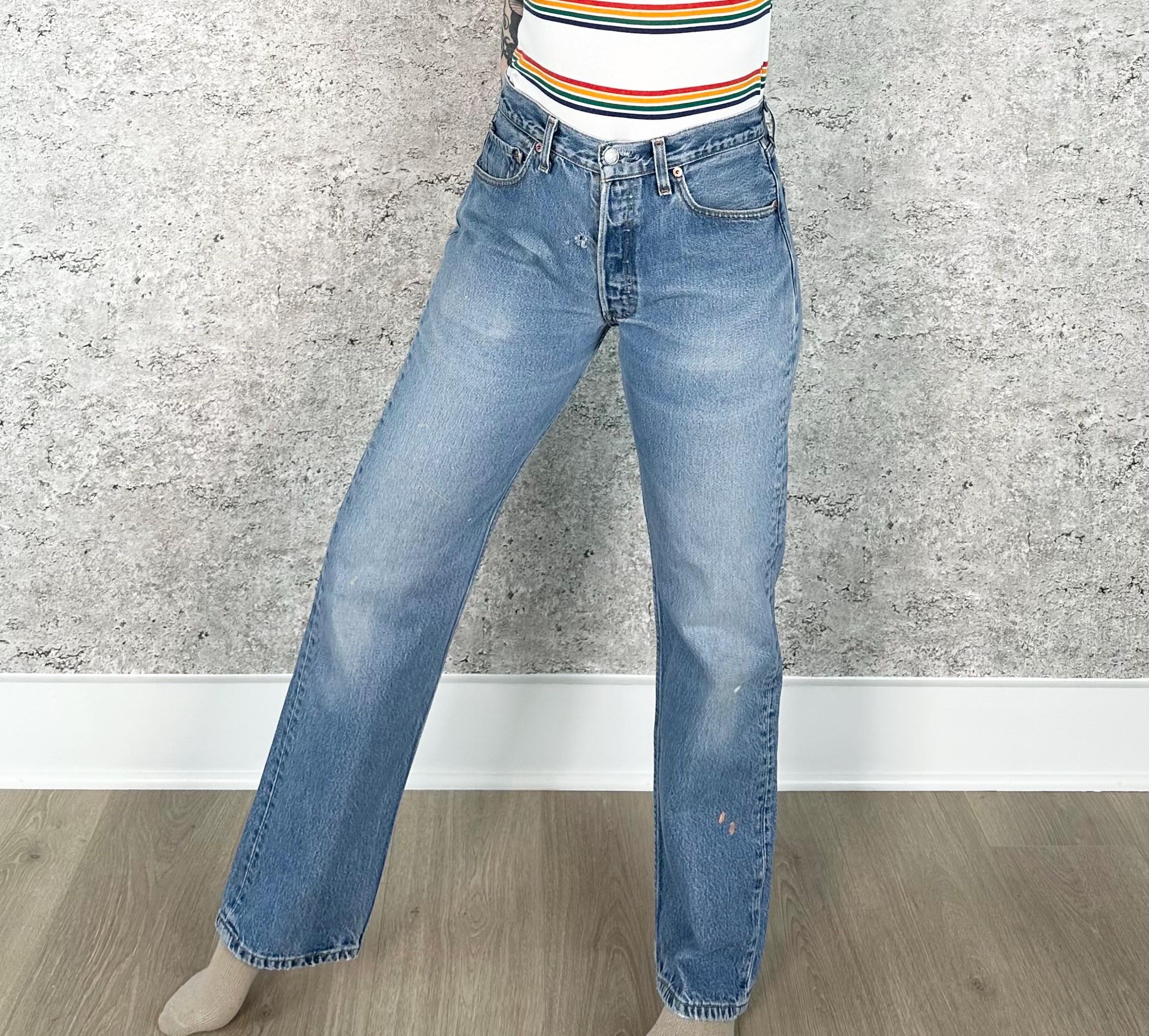 All denim has been cleaned/sanitized and item will be sent ready to wear! Jeans are 20+ years old and in great vintage condition with normal vintage characteristics. Fading, wear, small marks, twisted seams and general vintage character should be expected. Zoom to see condition detail in flat photos.