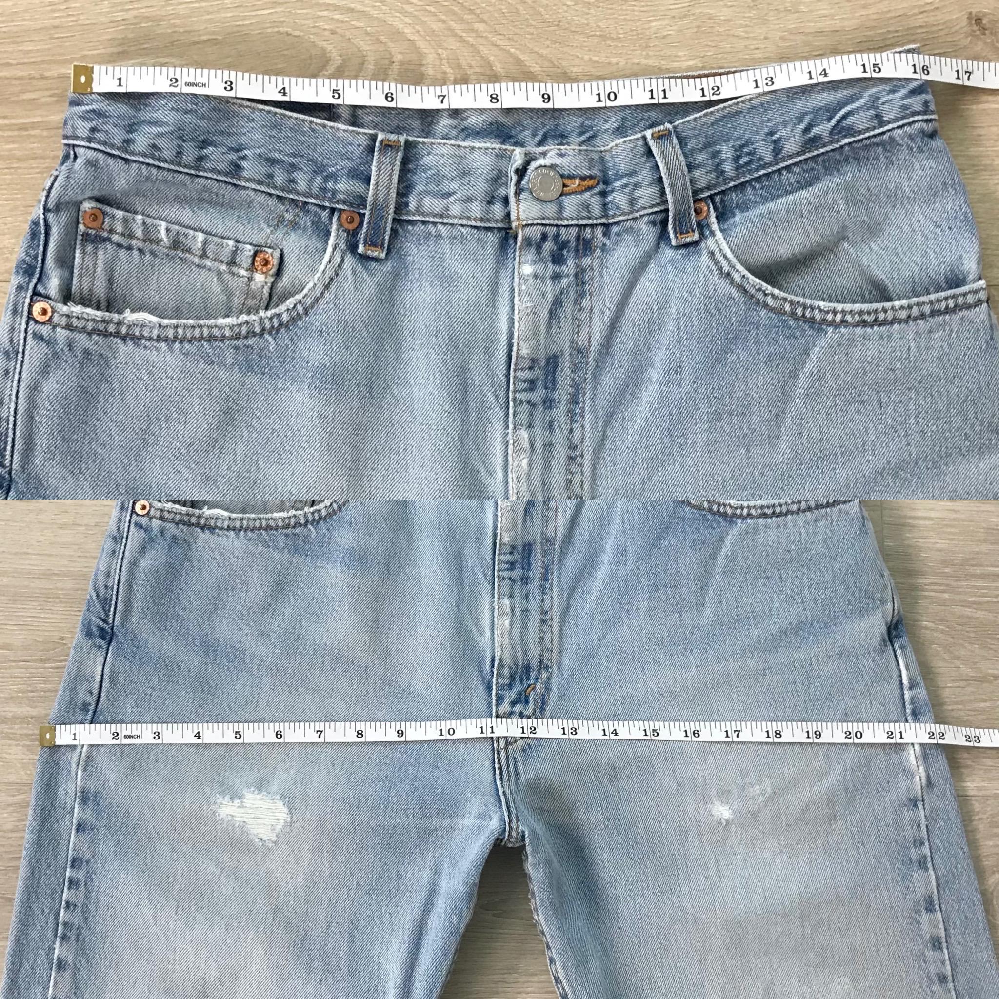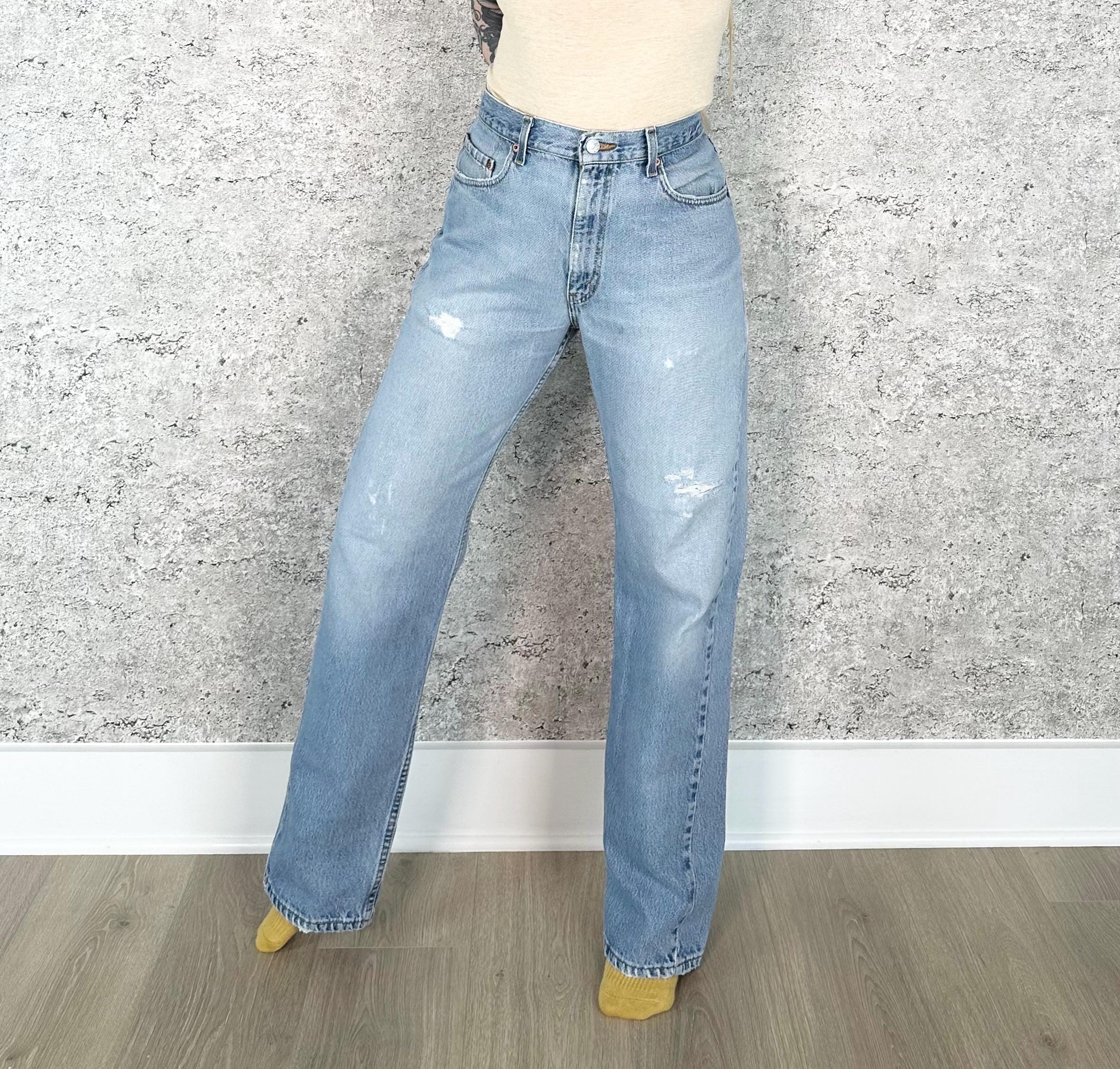 All denim has been cleaned/sanitized and item will be sent ready to wear! Jeans are 20+ years old and in great vintage condition with normal vintage characteristics. Fading, wear, small marks, twisted seams and general vintage character should be expected. Zoom to see condition detail in flat photos.