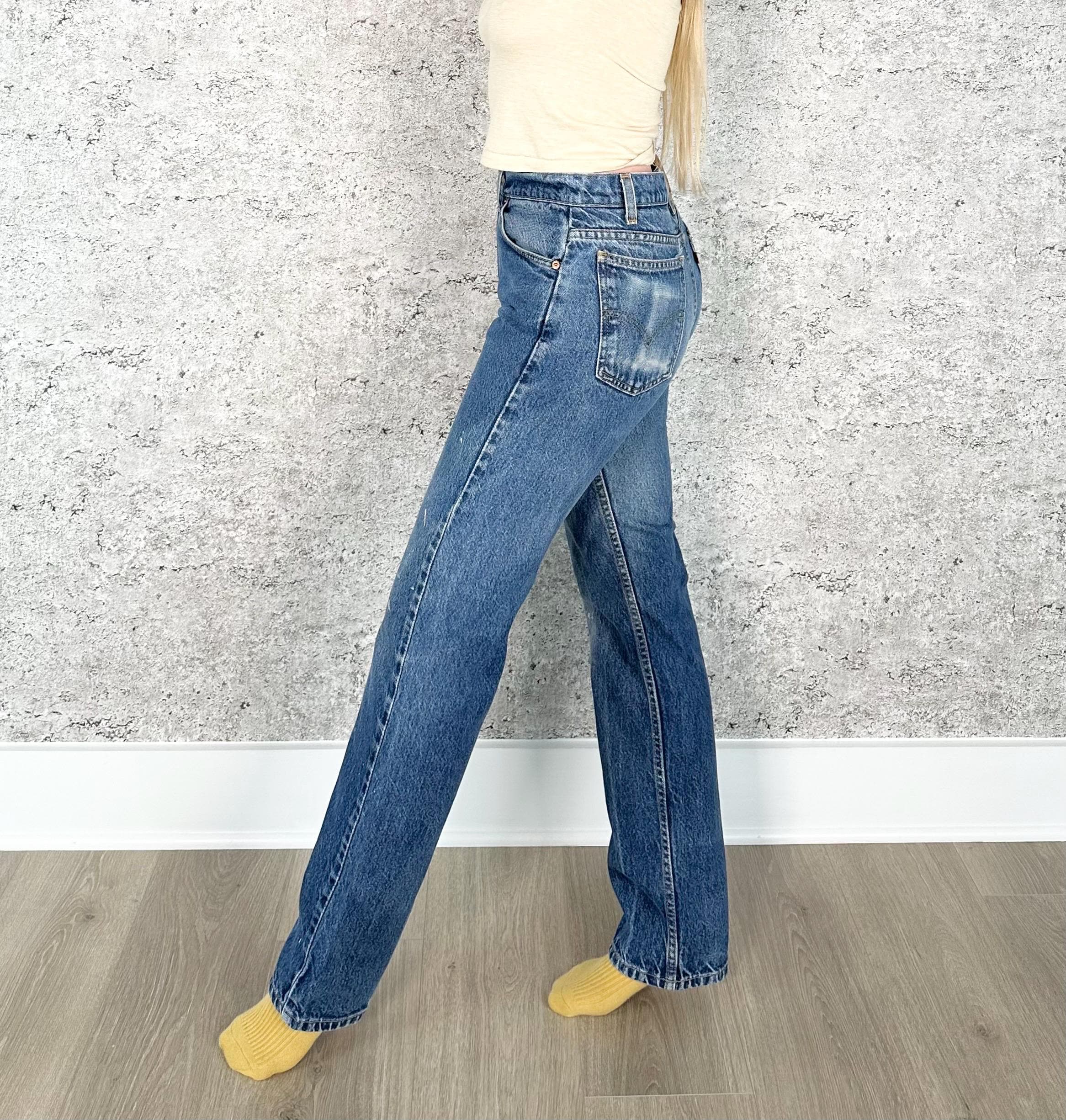 All denim has been cleaned/sanitized and item will be sent ready to wear! Jeans are 20+ years old and in great vintage condition with normal vintage characteristics. Fading, wear, small marks, twisted seams and general vintage character should be expected. Zoom to see condition detail in flat photos.