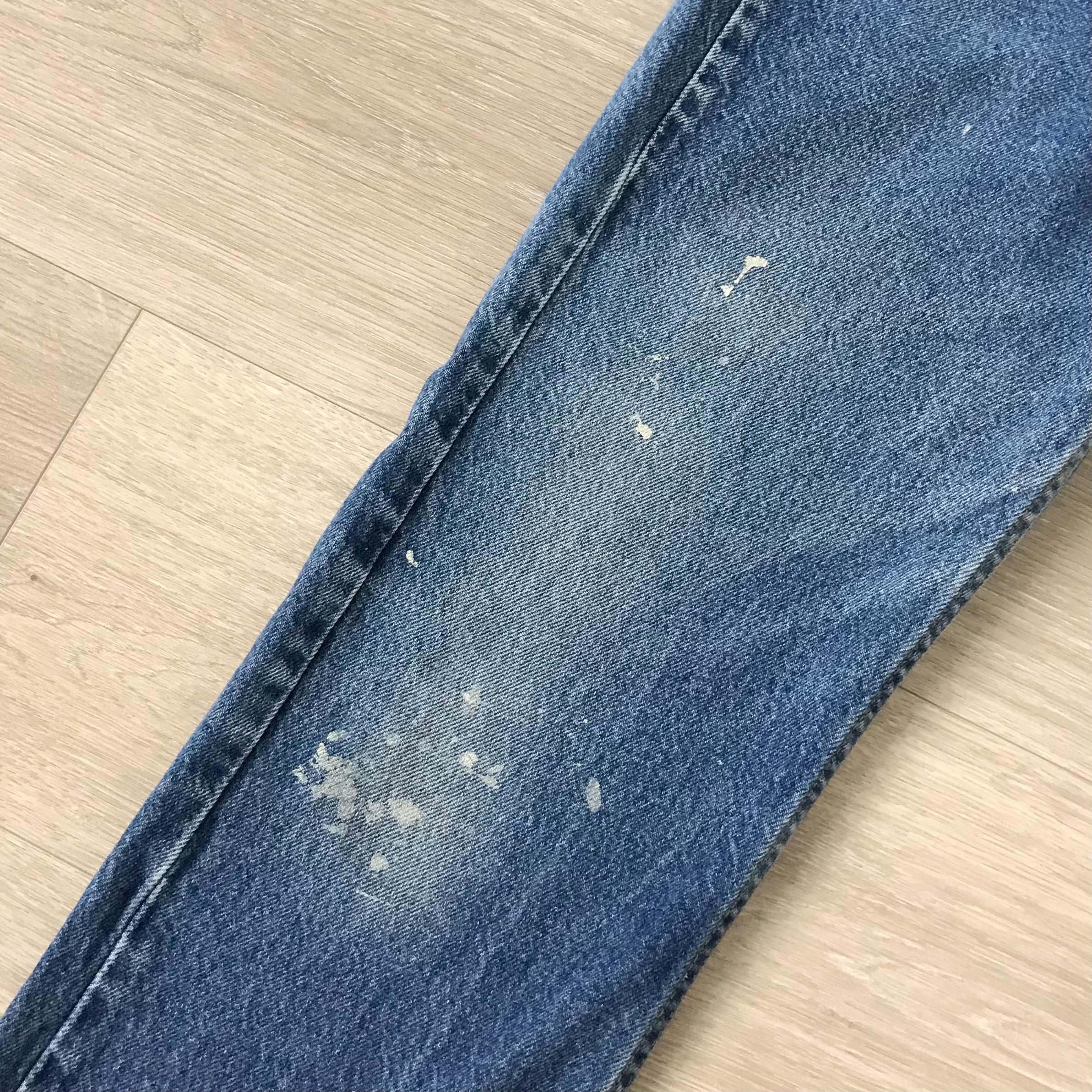 Details: Denim has paint splatter and fading throughout - really cool one-of-a-kind vintage look!