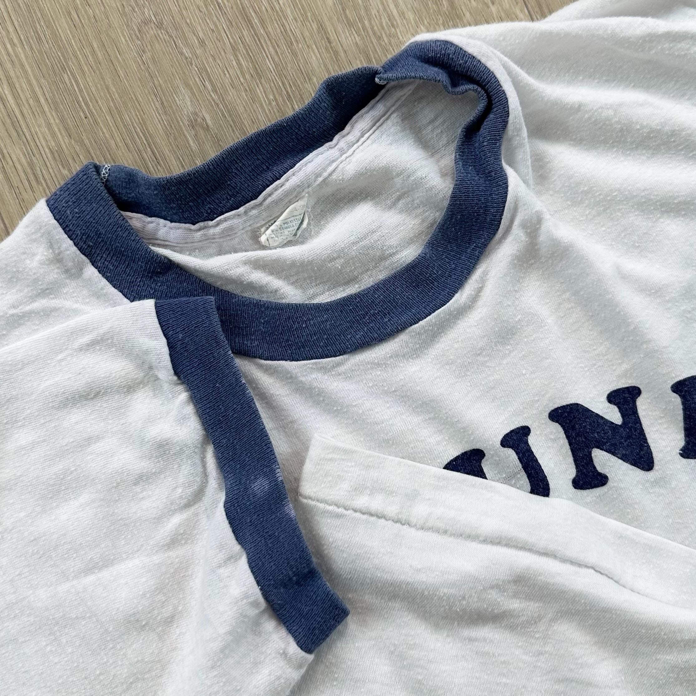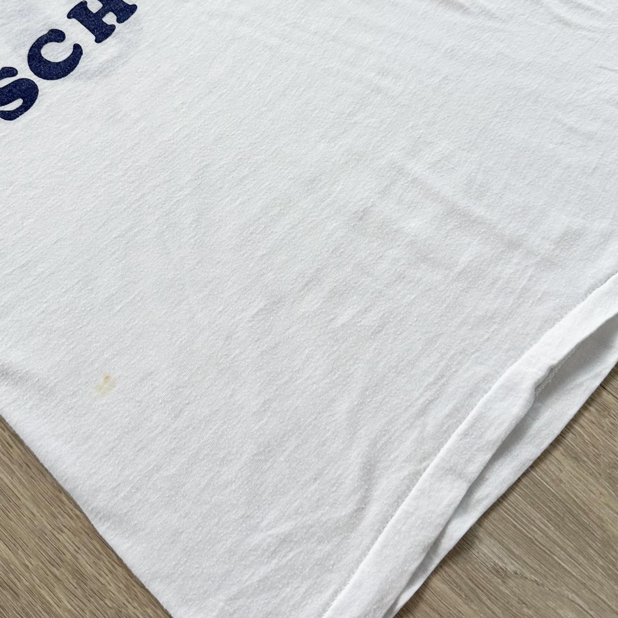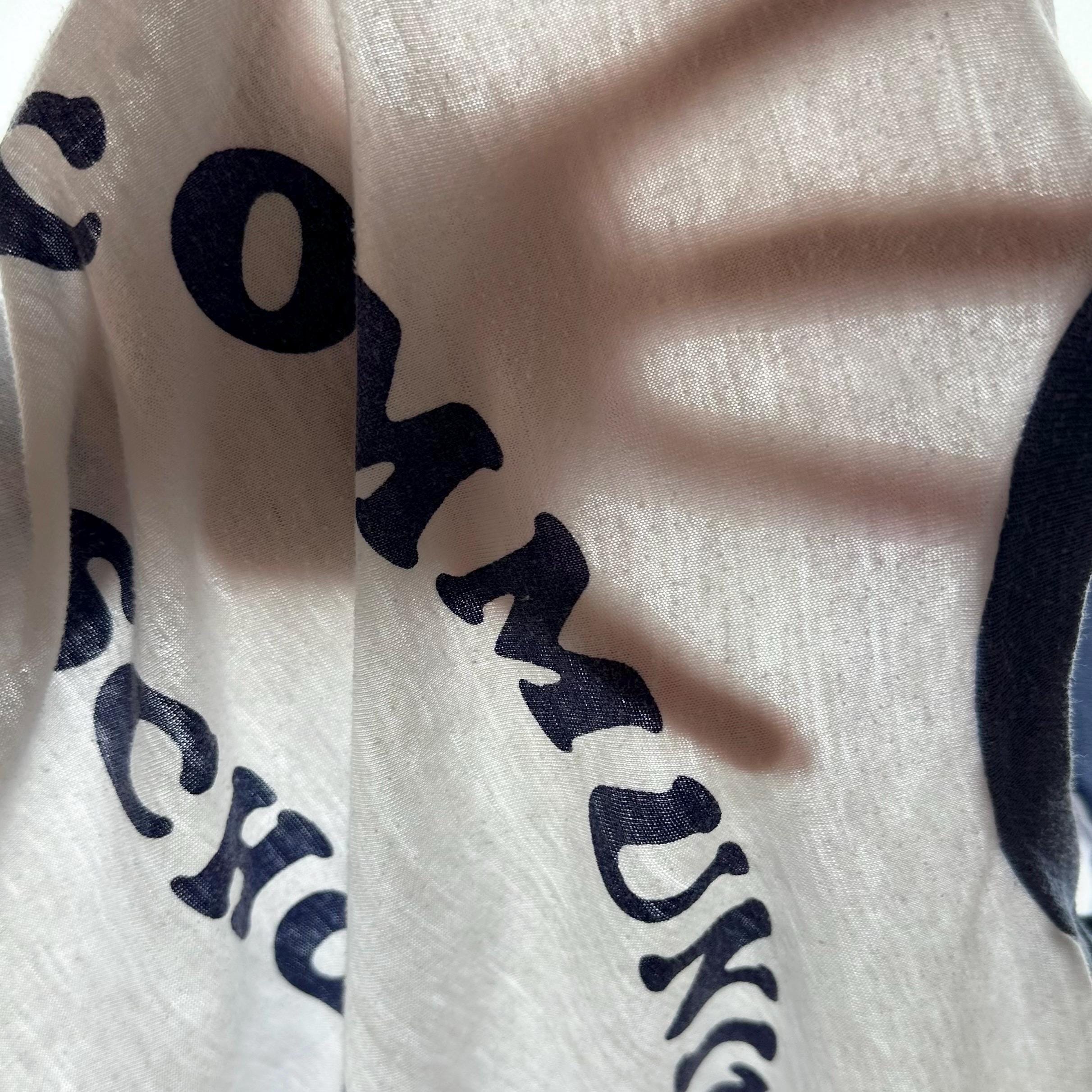 *Condition / Notable wear or flaws: Natural wear and fading from age, some bleach splatter on sleeve, some marks throughout (see close up). Shirt is very old and has an imperfect true vintage look!